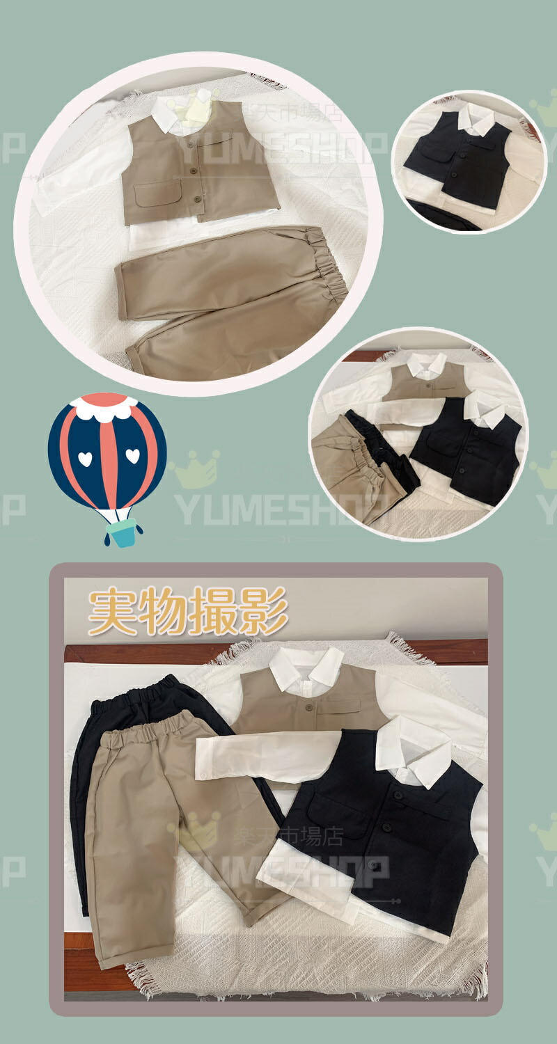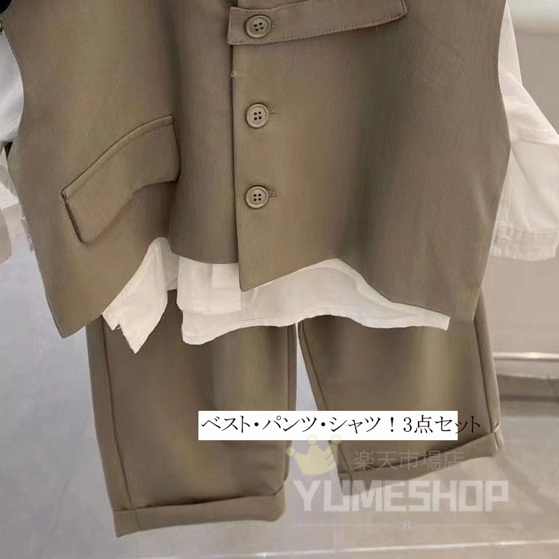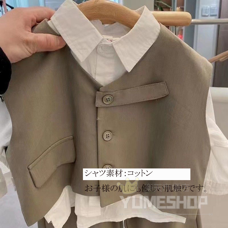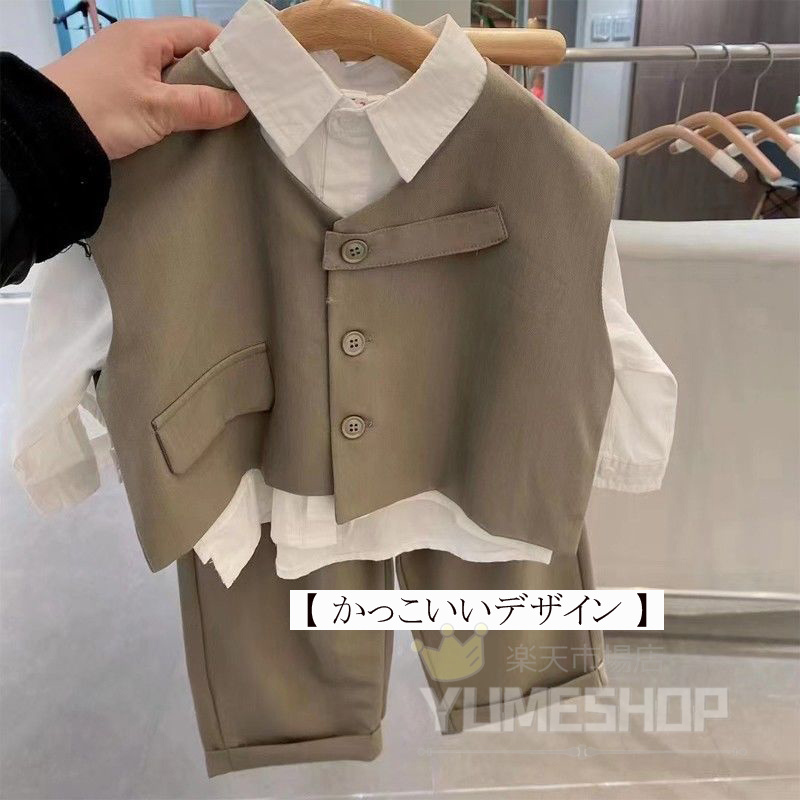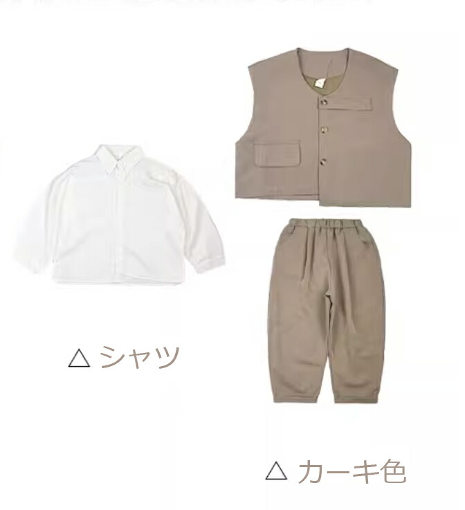 高品質 3点セット 子供服 フォーマル キッズ スーツ カジュアルセットアップ 礼服 特集 カーキ ブラック 80cm 90cm 100cm 110cm 120cm 130cm 140cm
