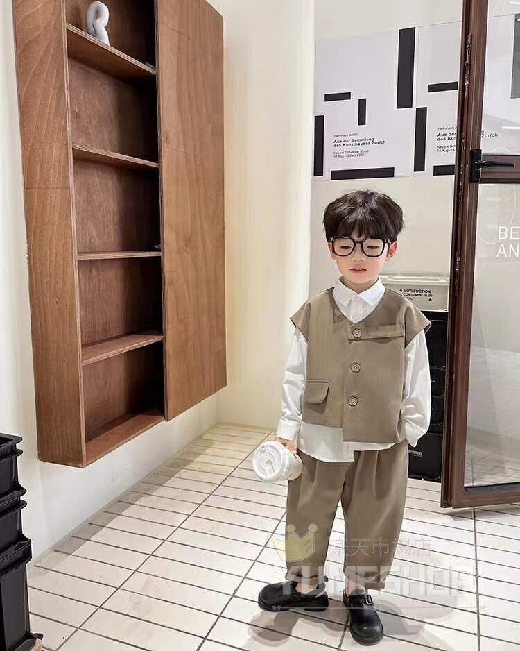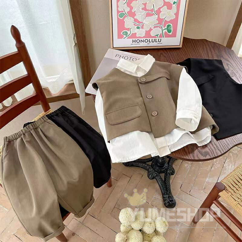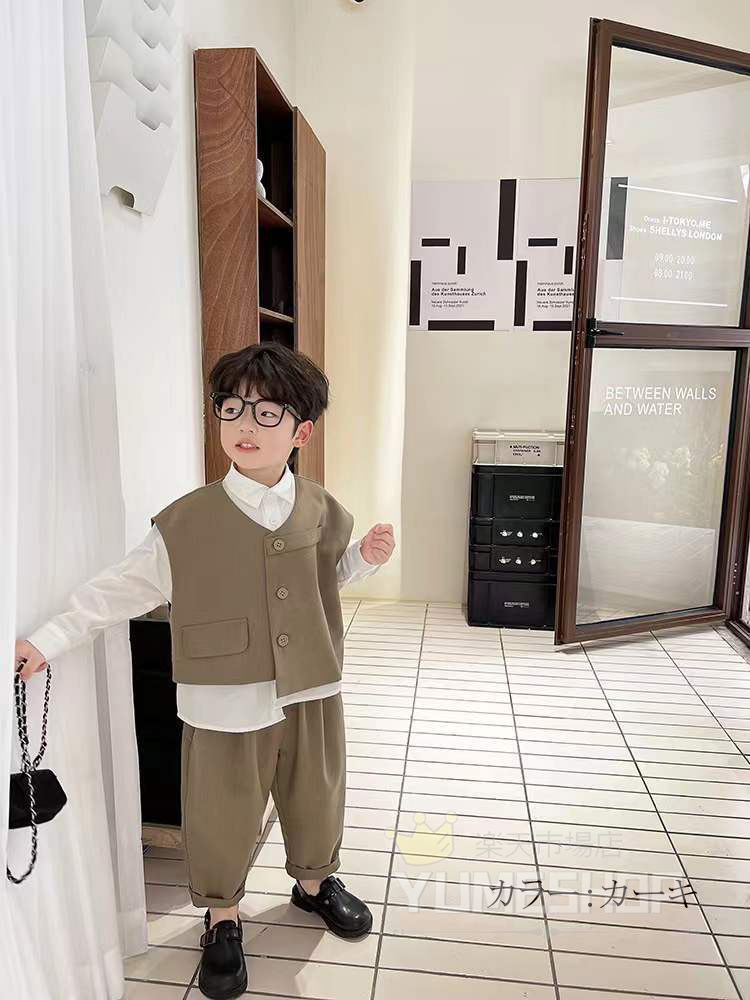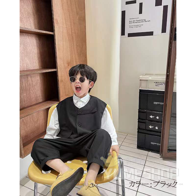高品質 3点セット 子供服 フォーマル キッズ スーツ カジュアルセットアップ 礼服 特集 カーキ ブラック 80cm 90cm 100cm 110cm 120cm 130cm 140cm