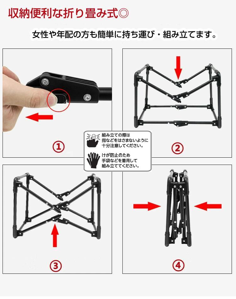 ユニックな折り畳み式のデザインで、取り付けと保管を行うには、4つのバックルを締めたり解除したりするだけです。