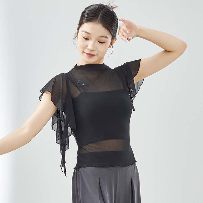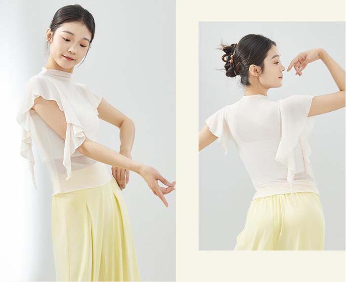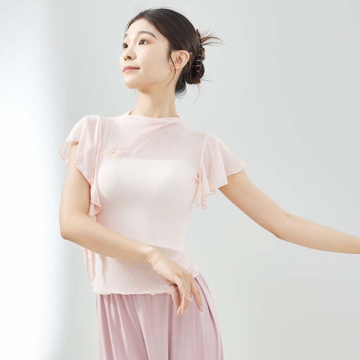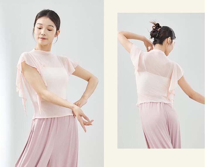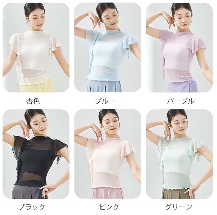 古典ダンス衣装 トップス フレア袖 ス S M L XL 杏色 ブラック パープル ピンク ブルー グリーン