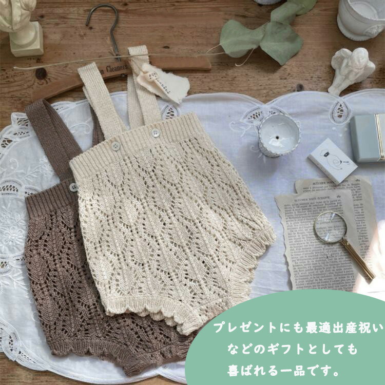 帽子付き サスペンダーニットロンパース ベビー ベビー服 ファッション カバーオール ロンパース 特集 オフホワイト カーキ色 66cm 73cm 80cm 90cm