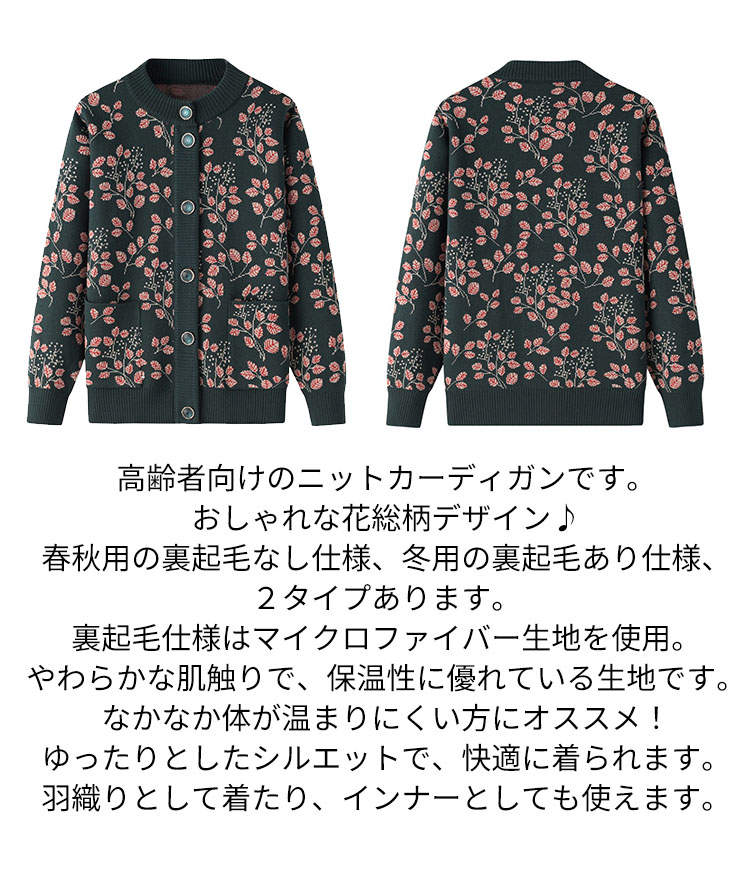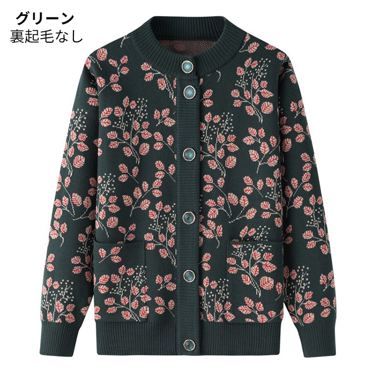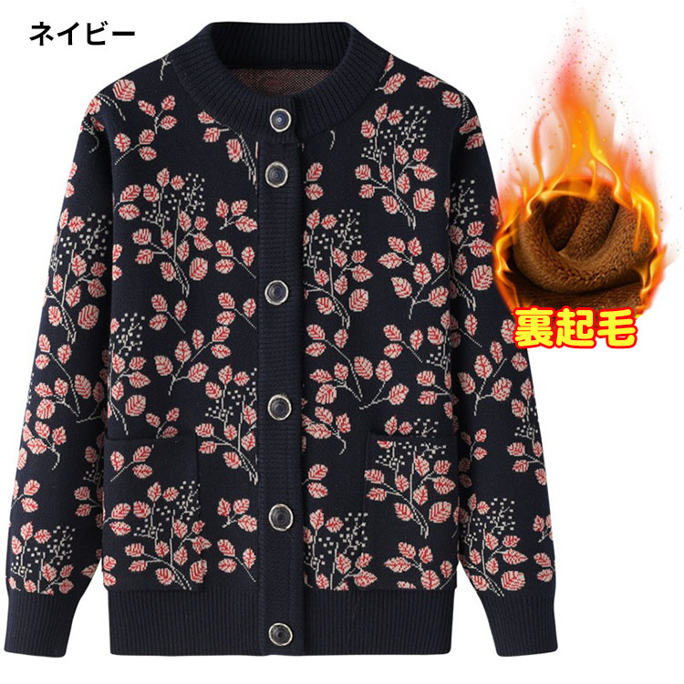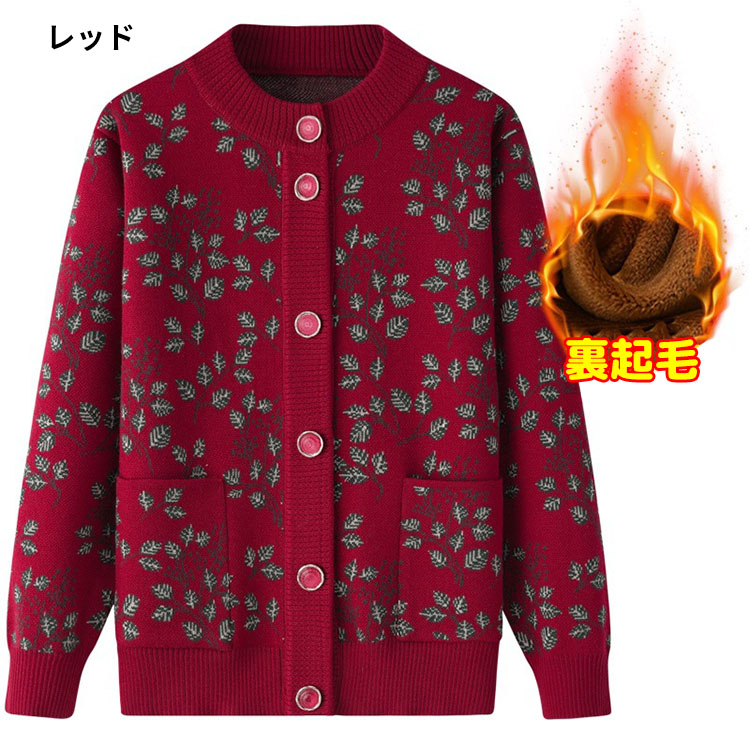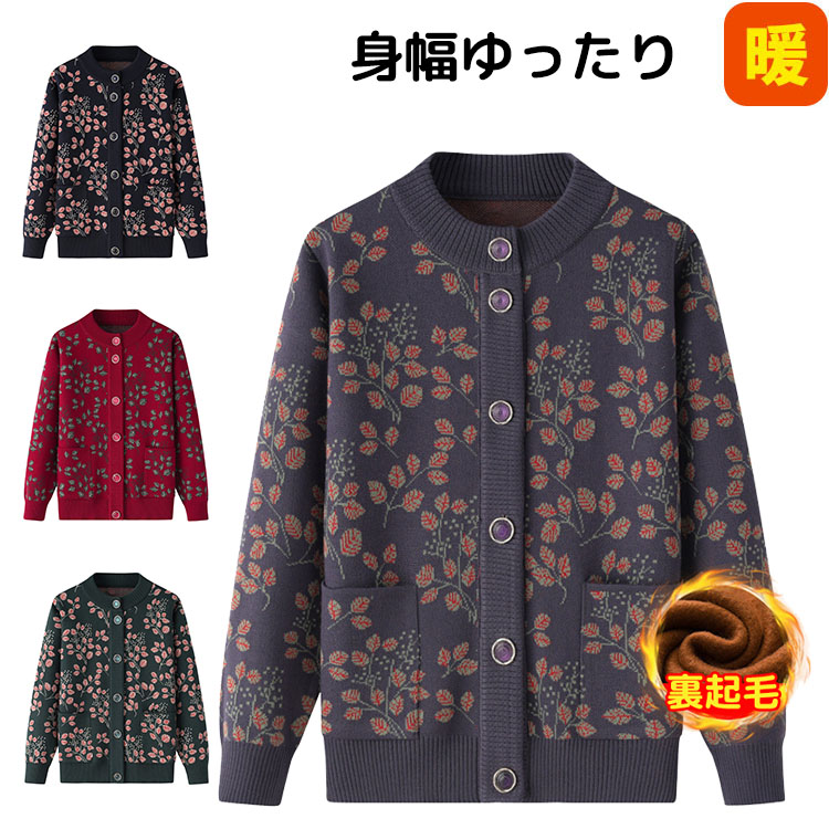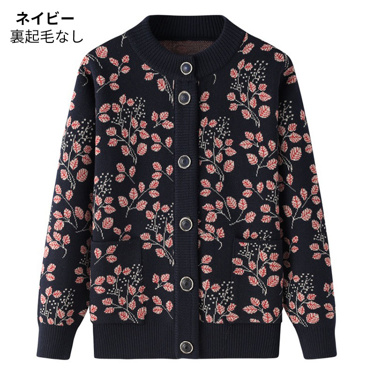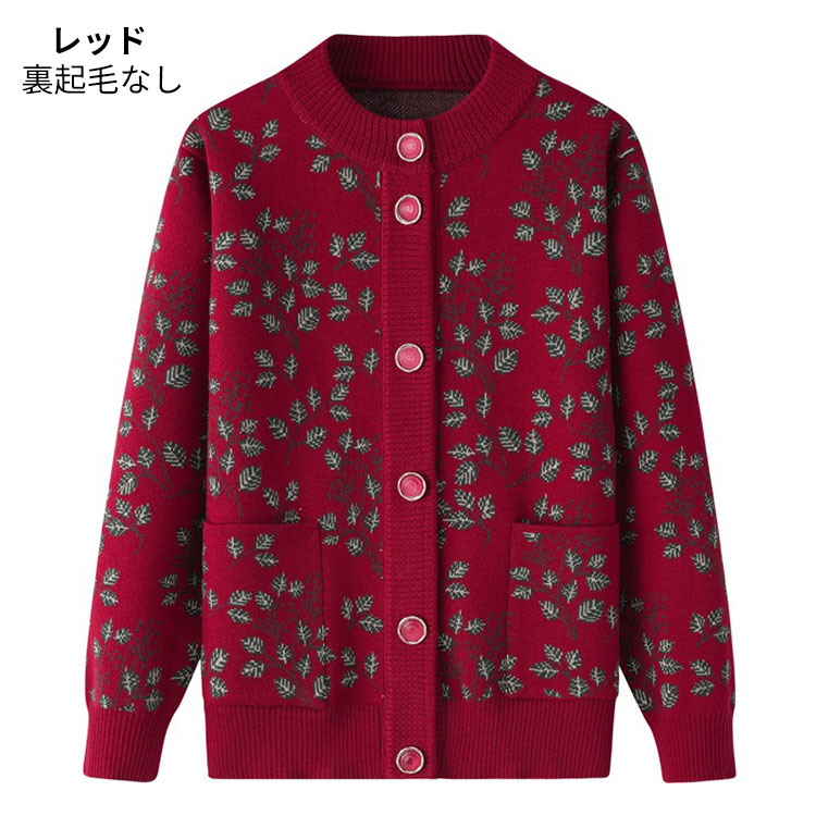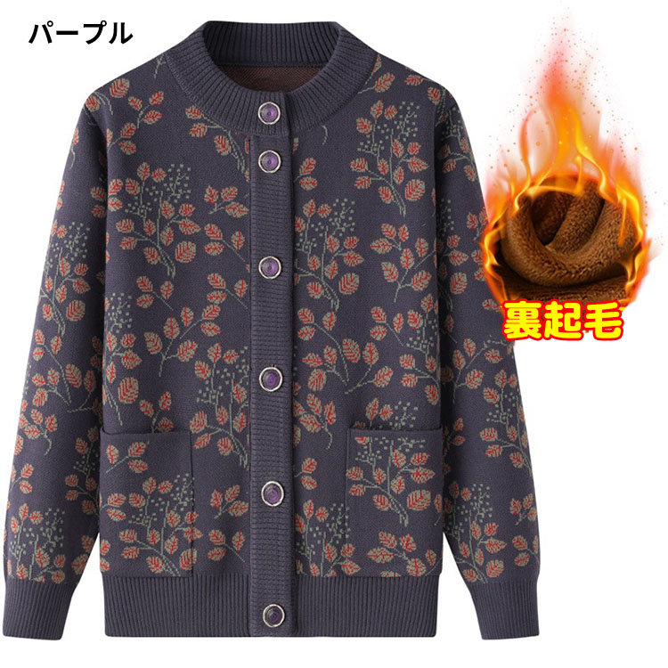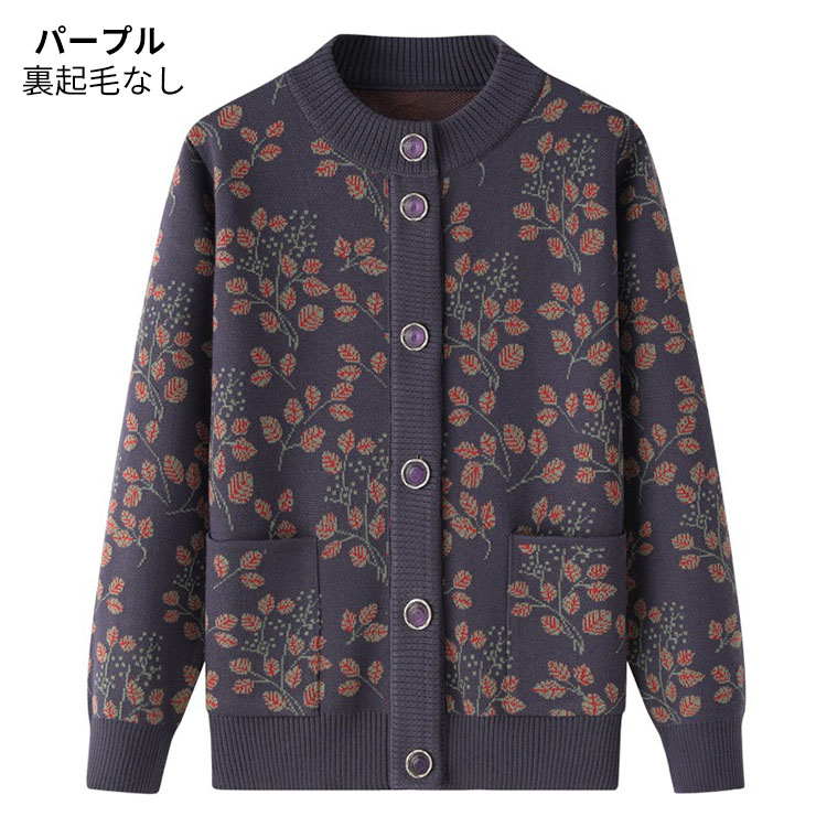婦人服 シニア ニットカーディガン お トップス カーディガン ボレロ 新作 ネイビー パープル レッド グリーン 裏起毛なし 裏起毛あり