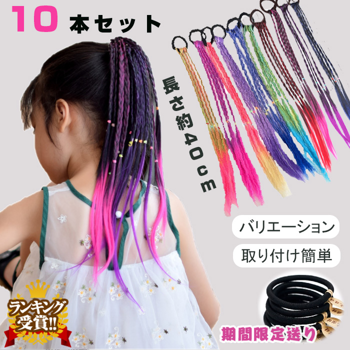 キッズダンス衣装 ヘアエクステ 10本入り ヘアアクセサリー エクステ ガールズ ヒップホップ 卒園式 ハロウィン コスプレ 子供 髪飾り ダンス髪型 ウィッグ 編み込み 10色セット グラ 三つ編み