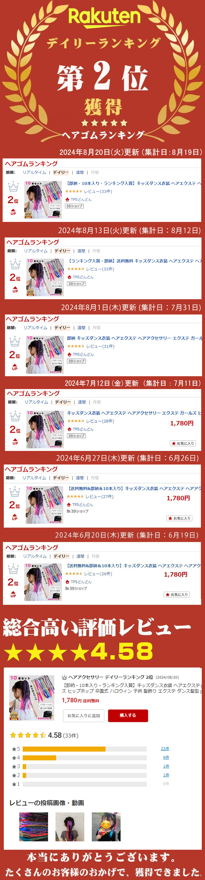 キッズダンス衣装 ヘアエクステ 10本 キッズ ベビー マタニティ 早い者勝ち!ポイントUP