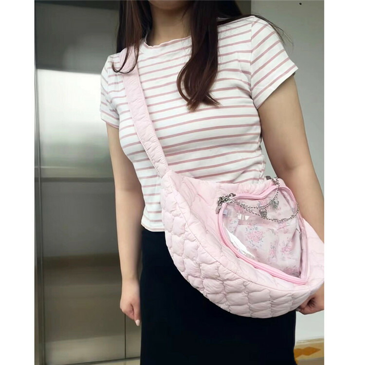 前の透明カバーに飾り板が入っていて、自分の好きな小物を入れることができるバッグです。 好きな芸能人や、アニメの写真 、缶バッジ、ストラップ、キーホルダーなどを入れるだけで、簡単に世界で1つたったのオリジナルバッグの完成です、毎日楽しく使える。