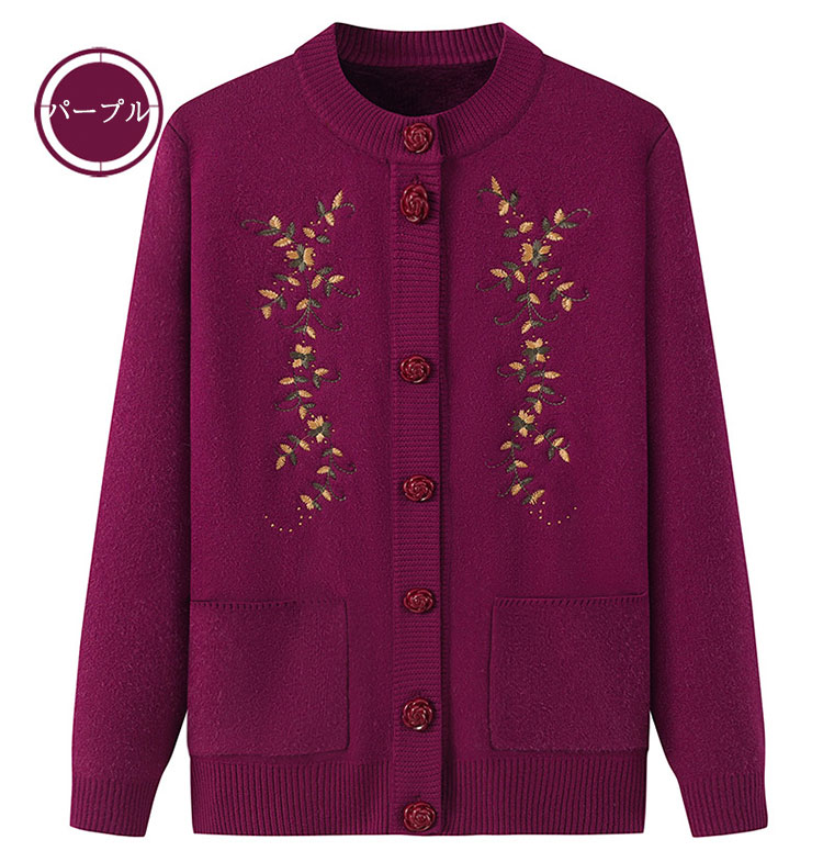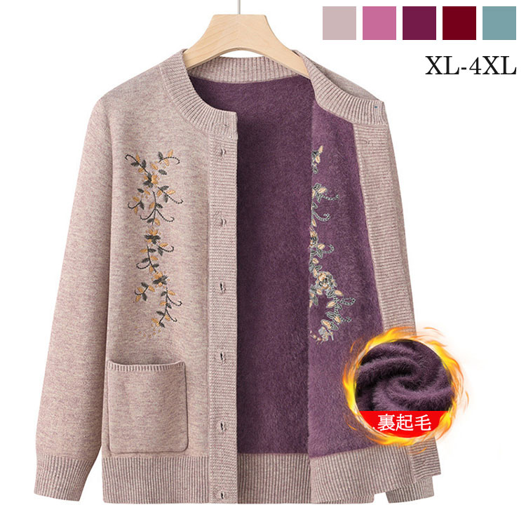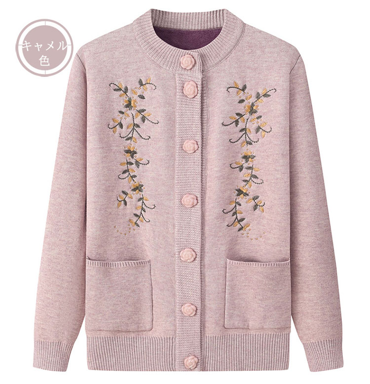おばあちゃん 裏起毛 ニットカーディガ レディースファッション 期間限定ポイントUP! キャメル ピンク パープル ワインレッド グリーン XL 2XL 3XL 4XL