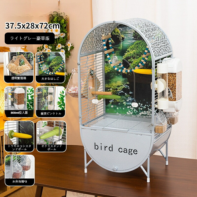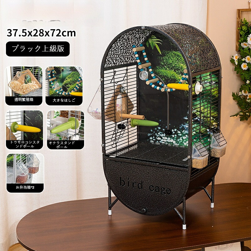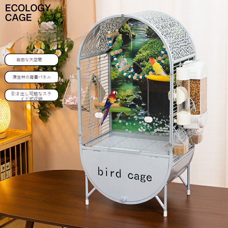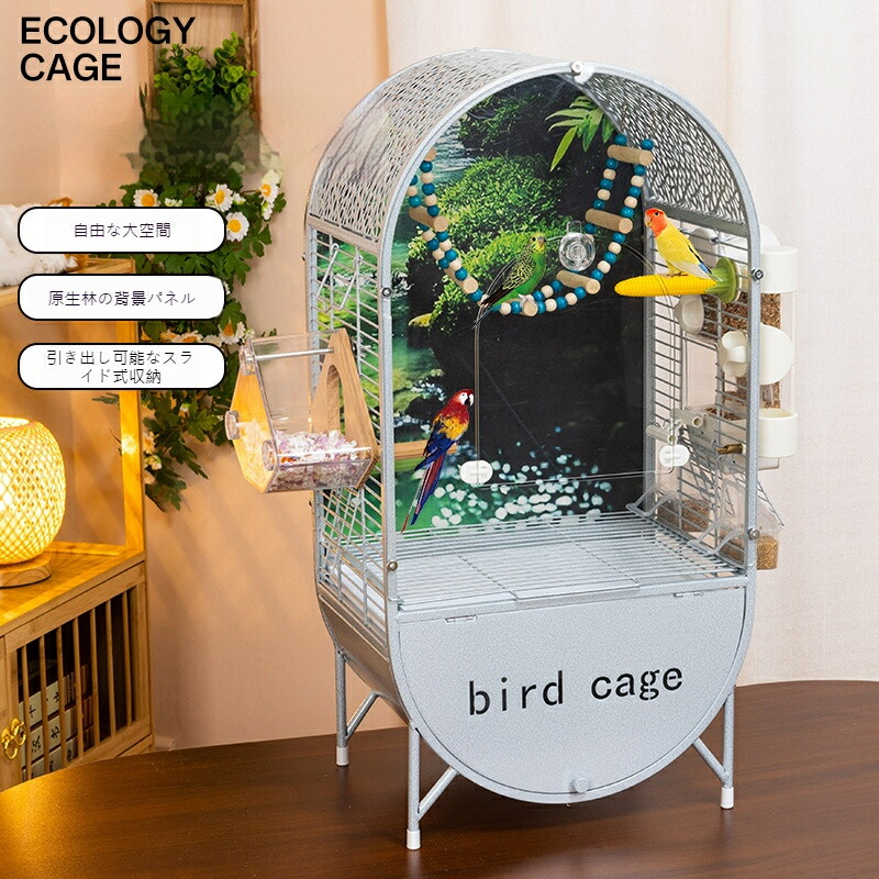 天然木バックパネル付き 高級オウム インコケージ 広々ハウスタイプ バードケージ ヨウム、ボウシインコ、オカメインコ対応 DIYレイアウト可能
