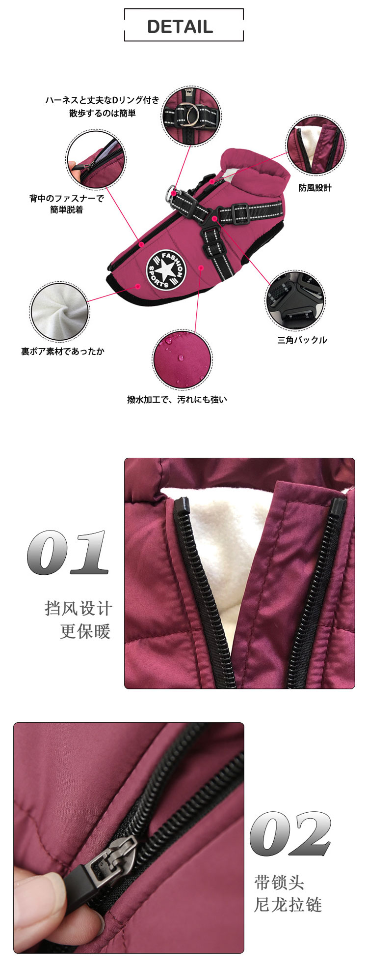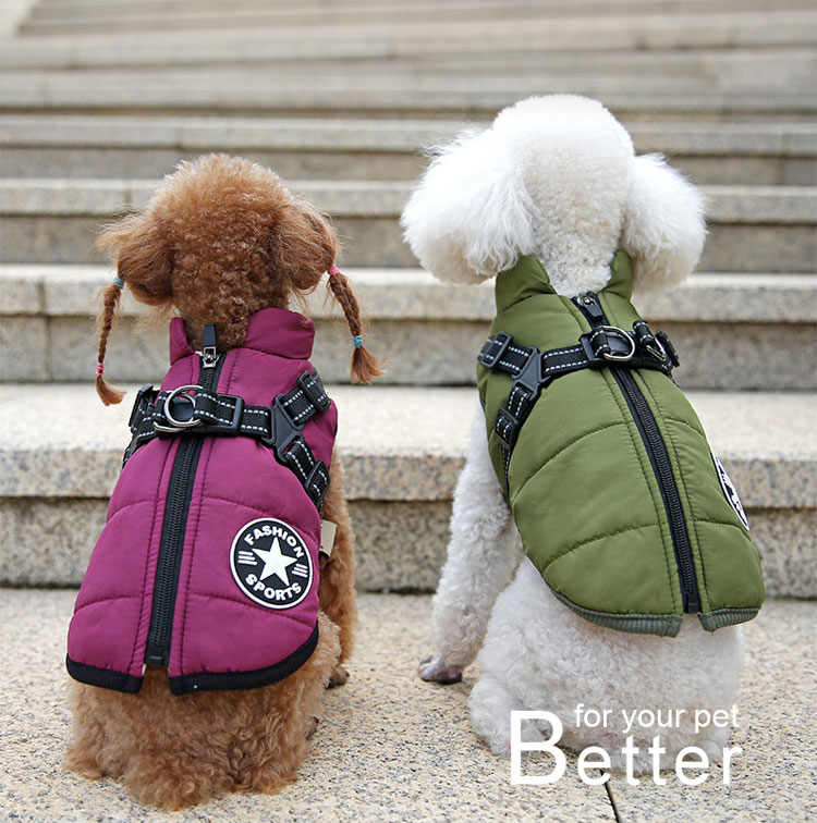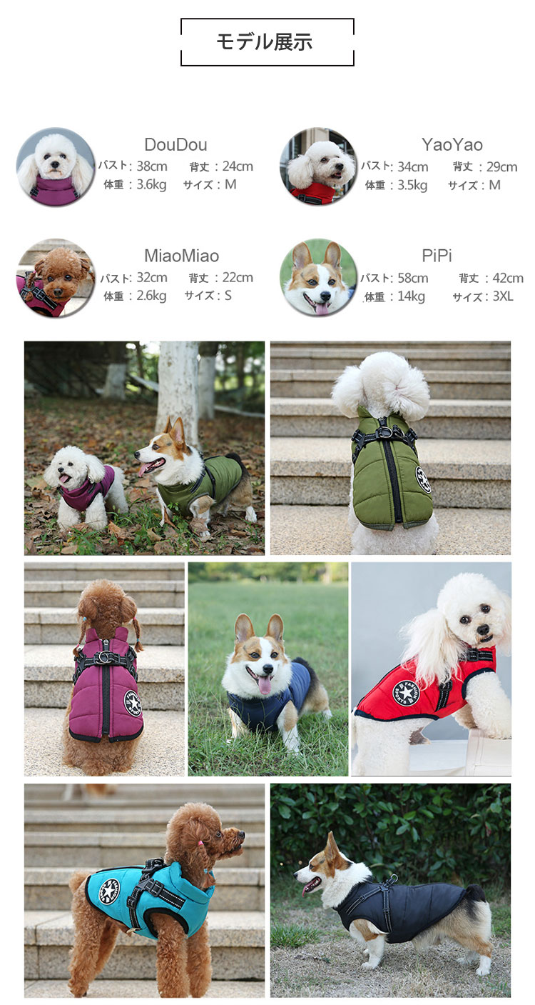 ペット服 犬用 犬の服 ハーネス一体型 犬用品 ドッグウェア ベスト 期間限定割引クーポン レッド グリーン ブラック ネイビー パープル ピンク ブルー S M L XL 2XL