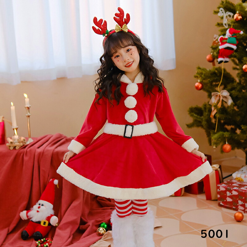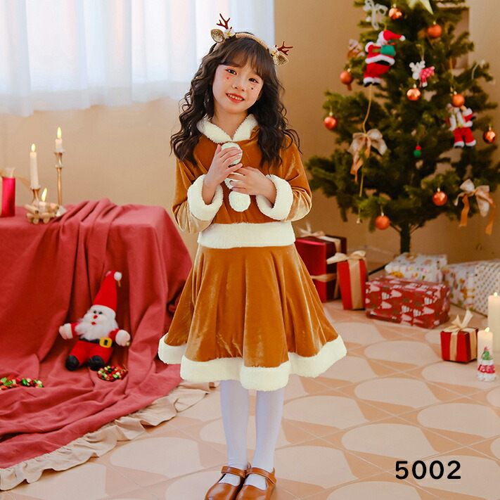 キッズクリスマス衣装 コスチューム 女 コスプレ 変装 仮装 コスチューム一式 続々登場 トナカイ サンタクロース 5002 XS S M L 110cm 120cm 130cm 140cm 150cm
