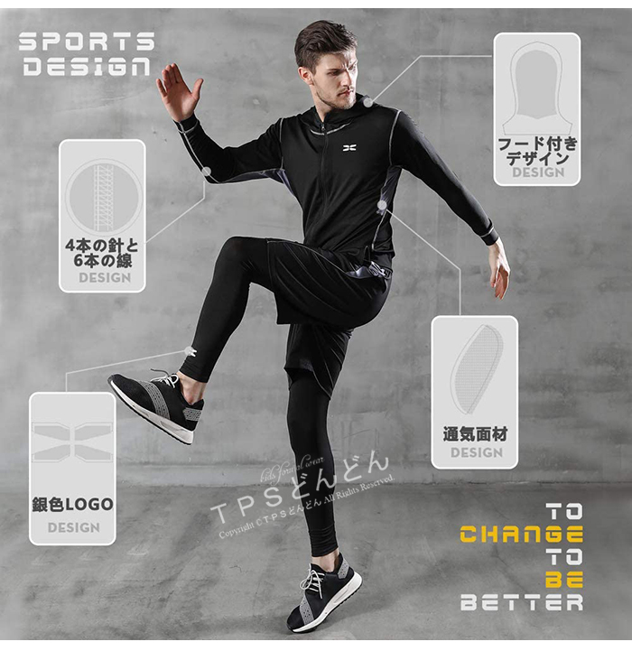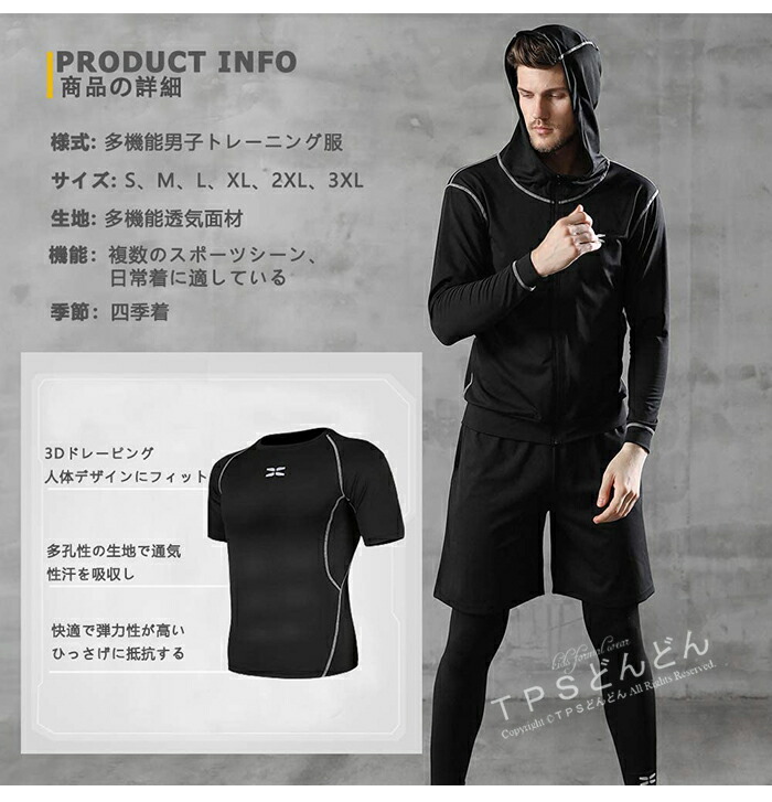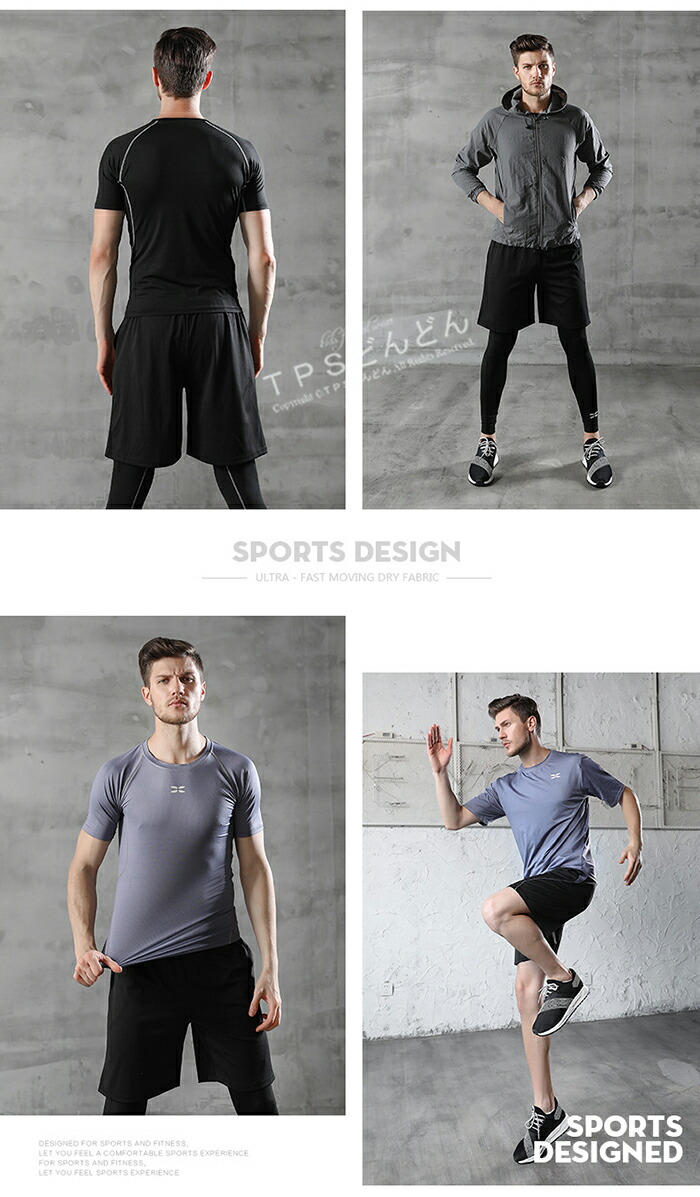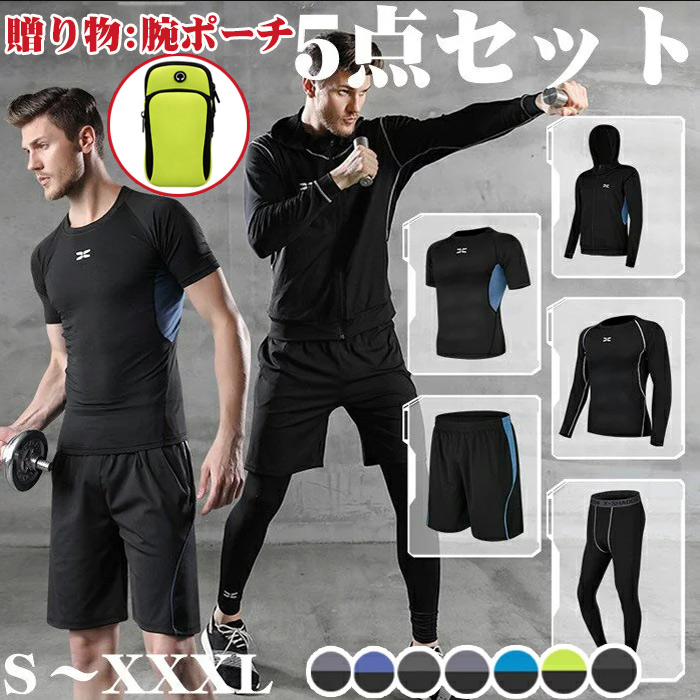 コンプレッションウェア メンズ 5点セット ジムウエア スポーツウェア ランニングウェア トレーニングウェア 上下 長袖 半袖 おしゃれ 7カラー6サイズ ランニング ショートパンツ レギン パーカー