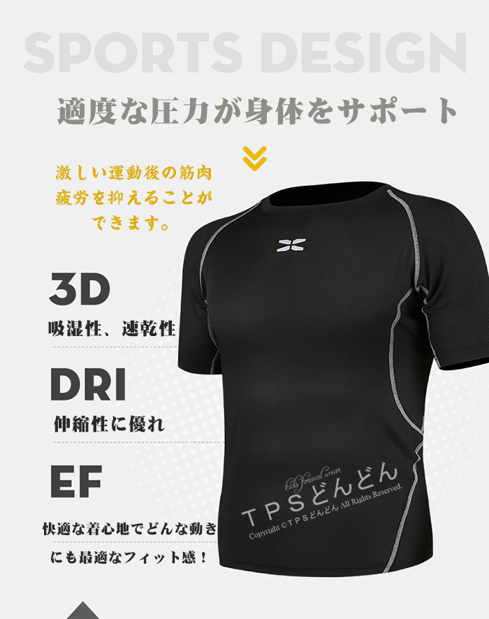 吸湿性、速乾性、伸縮性に優れ、快適な着心地でどんな動きにも最適なフィット感!適度な圧力が身体をサポート、激しい運動後の筋肉疲労を抑えることができます。