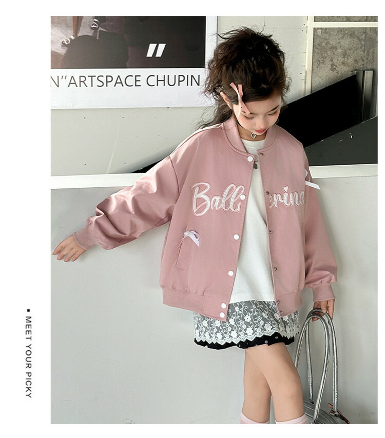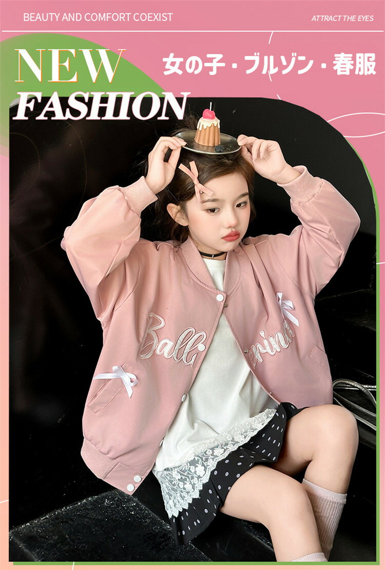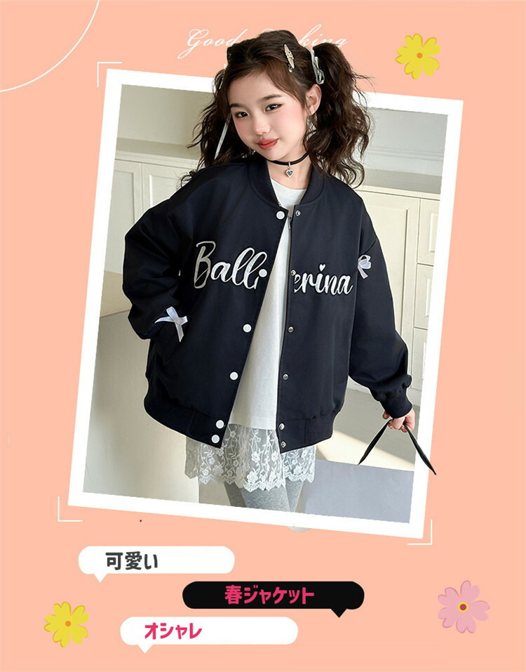 韓国子供服 女の子 ジャケット ブルゾ キッズ コート ジャケット 続々登場 ネイビー ピンク 120 130 140 150 160 170