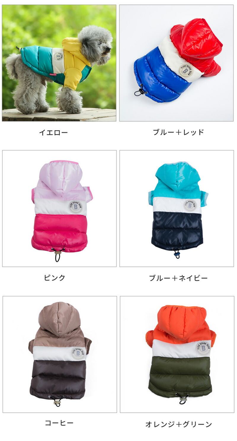 犬 服 犬の服 ダウン ジャケット コ 犬用品 ドッグウェア ジャケット 豊富な品揃え イエロー ブルー+レッド ピンク ブルー+ネイビー コーヒー オレンジ+グリーン 8-XS 10-S 12-M 14-L 16-XL 18-XXL 20-XXXL