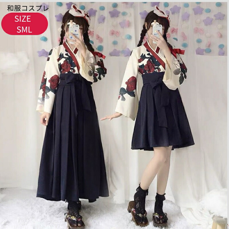 コスプレ 巫女 和服 ロング 着物 ハ ホビー 続々登場 S M L ブラック レッド