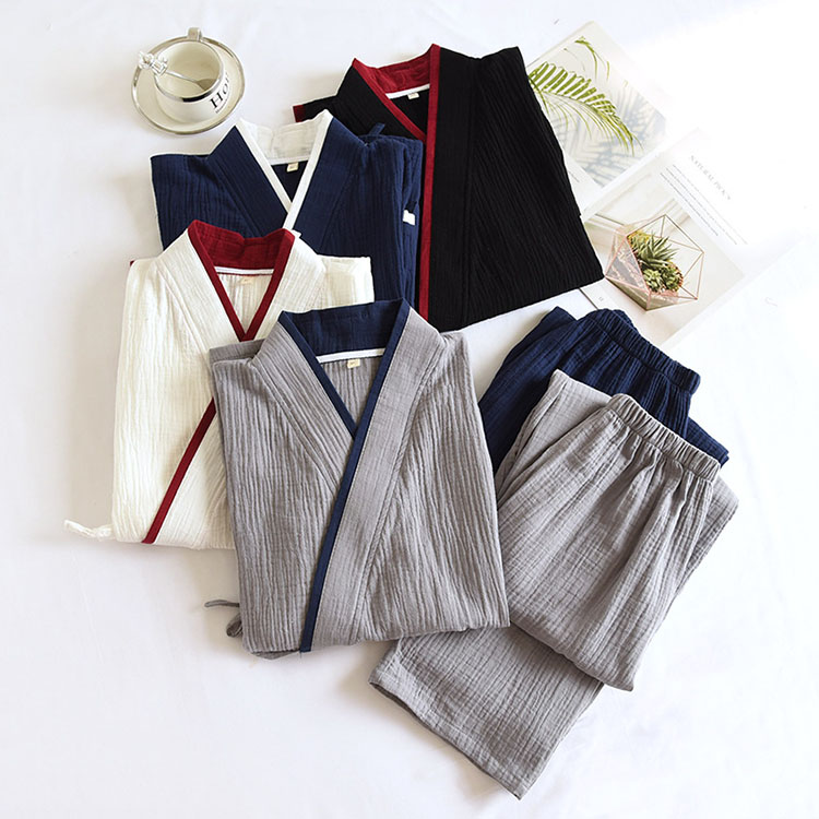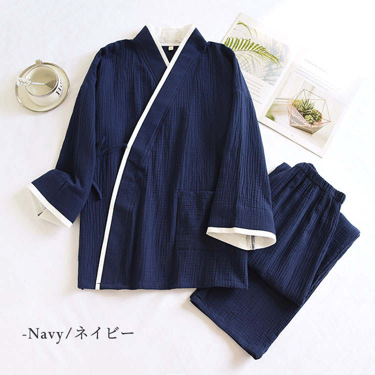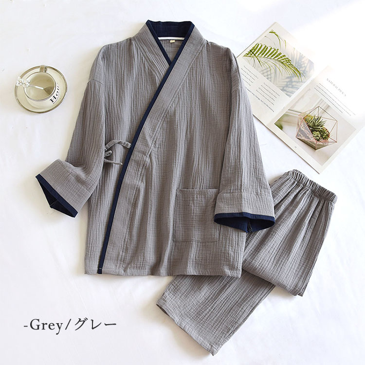 ガーゼ 甚平 上下セット パジャマ ル インナー 下着 ナイトウエア 続々入荷中 グレー ネイビー ブラック ホワイト M L XL