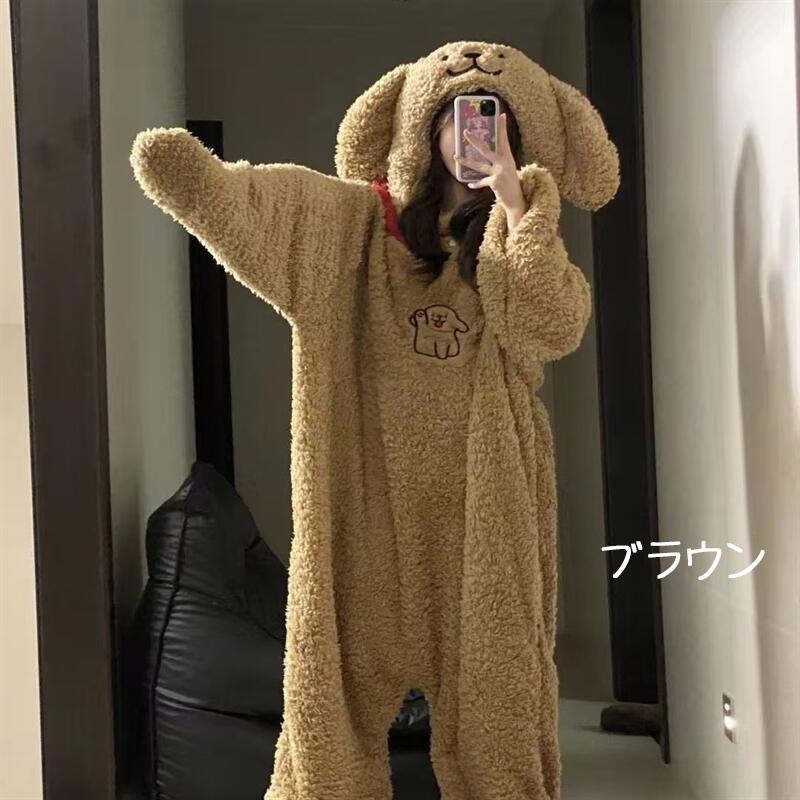 犬のフリースパジャマ 着ぐるみパジャマ ユニセックス ナイトウェア ルームウェア 豊富な品揃え ブラウン ホワイト S(47.5kg以内) M(47.5-57.5kg) L(57.5-65kg) XL(65-72.5kg)