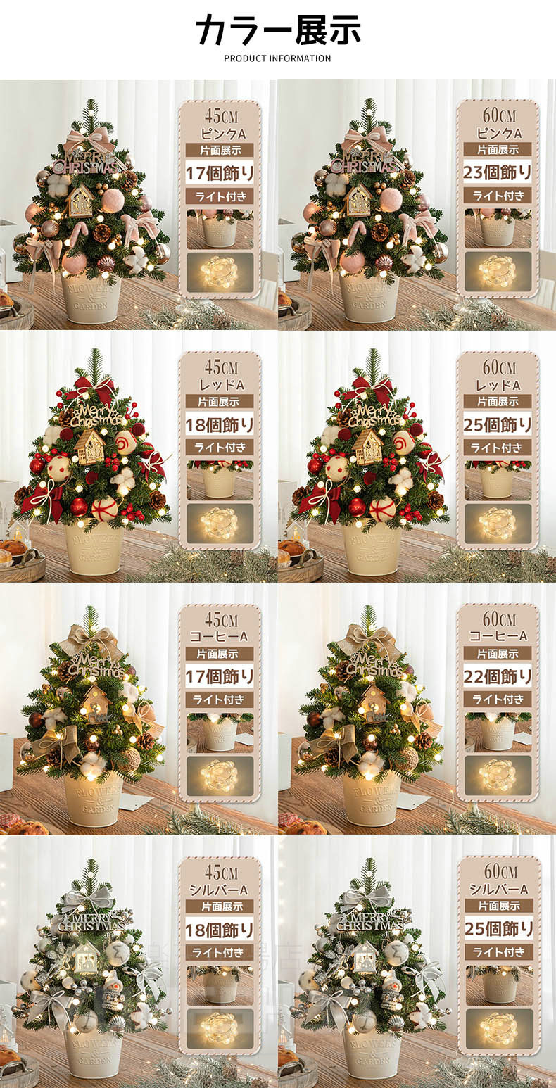 クリスマスツリー 卓上45cm 60c 45cmピンクA 60cmピンクA 45cmレッドA 60cmレッドA 45cmコーヒーA 60cmコーヒーA 45cmシルバーA 60cmシルバーA 45cmピンクB 60cmピンクB 45cmレッドB 60cmレッドB 45cmコーヒーB 60cmコーヒーB 45cmシルバーB 60cmシルバーB