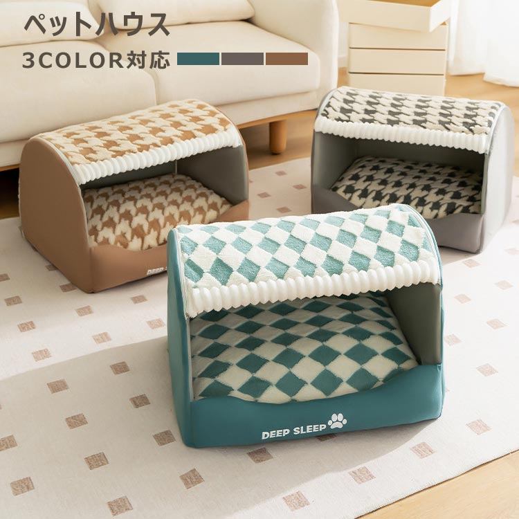 犬 猫 ペットハウス ペットベッド 可 ペット ペットグッズ 期間限定割引クーポン グレー ブラウン グリーン S M L XL