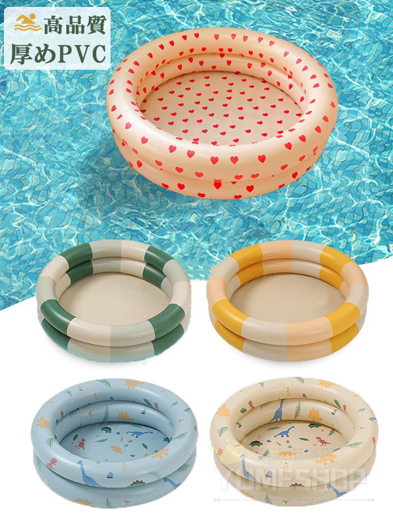 ベビープール プール ビニールプール おもちゃ プール 水遊び プール 豊富 ブルー恐竜柄 ベージュ恐竜柄 ボーダーイエロー ボーダーグリーン ハート柄 90#(460g) 120#(720g) 150#(1020g)