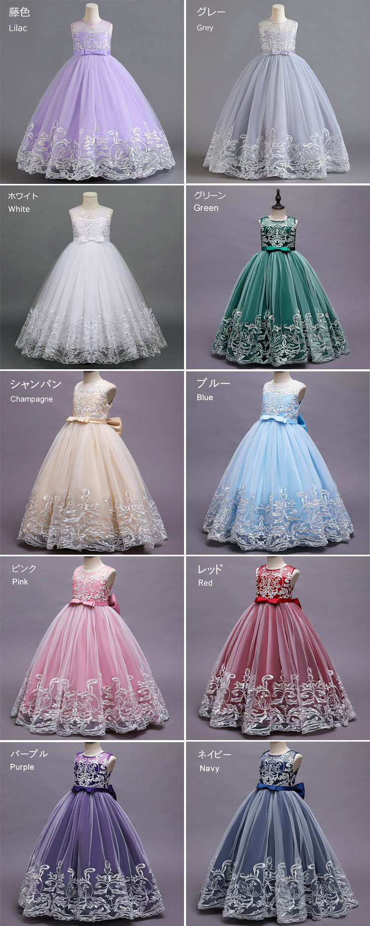 ピアノ発表会 ドレス 中学生 13色 キッズ ベビー マタニティ 新作 藤色 グレー ネイビー ピンク ブルー シャンパン パープル レッド グリーン ホワイト 桜色 桃色 ローズ 110cm 120cm 130cm 140cm 150cm 160cm