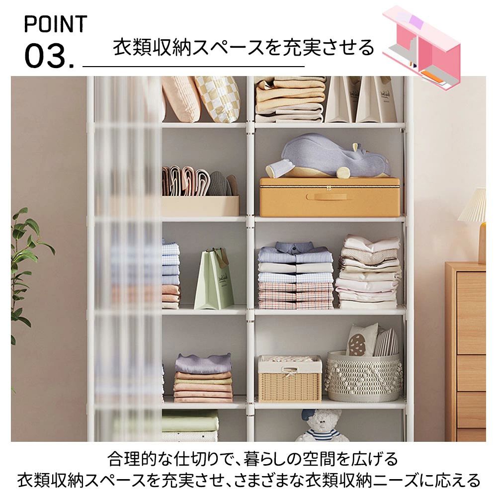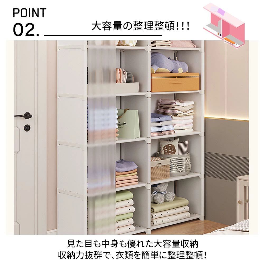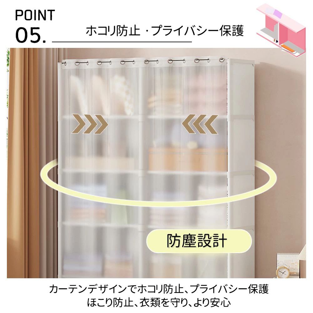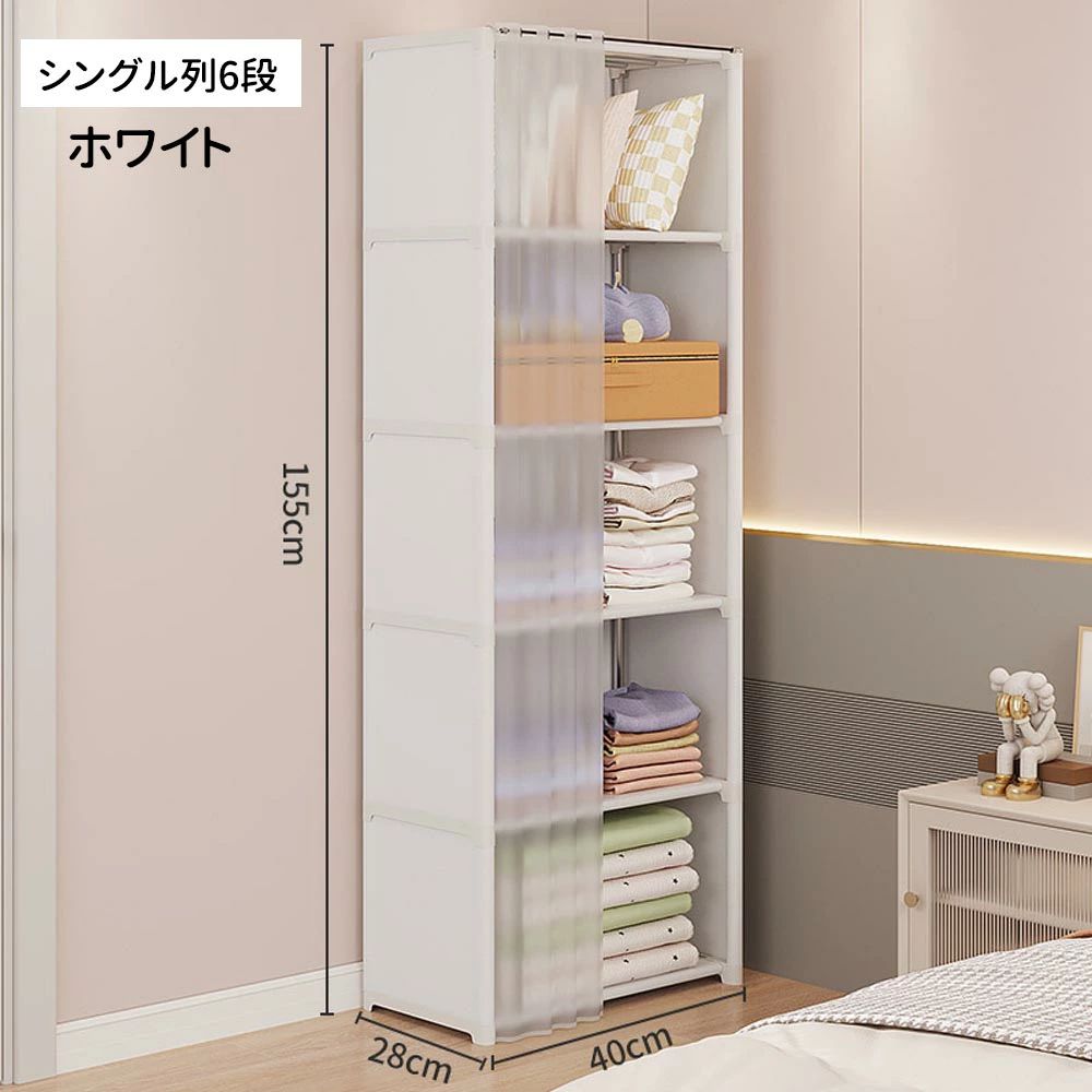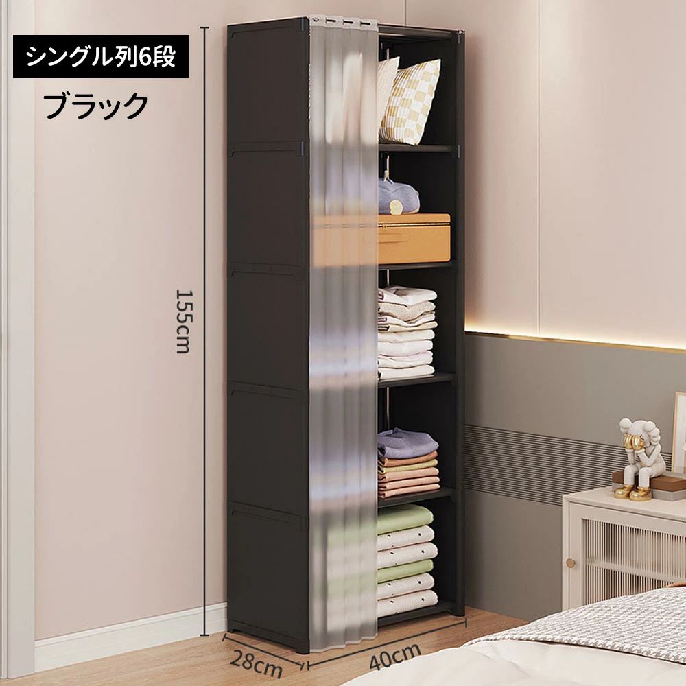 防塵クローゼット 力一テン付き 6 層 ブラック ホワイト