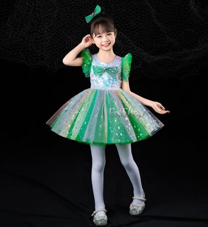 ダンス衣装キッズ子供用フォーマルドレス キッズ ドレス 新作 100 110 120 130 140 150 160 170 ホワイト ピンク レッド グリーン ブルー イエロー