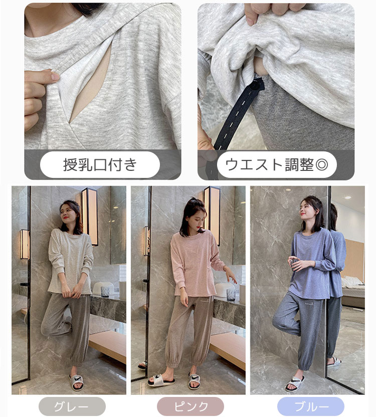 マタニティパジャマ ルームウェア 授乳 マタニティ ママ 下着 パジャマ パジャマ ネグリジェ 人気 グレー ピンク ブルー M L