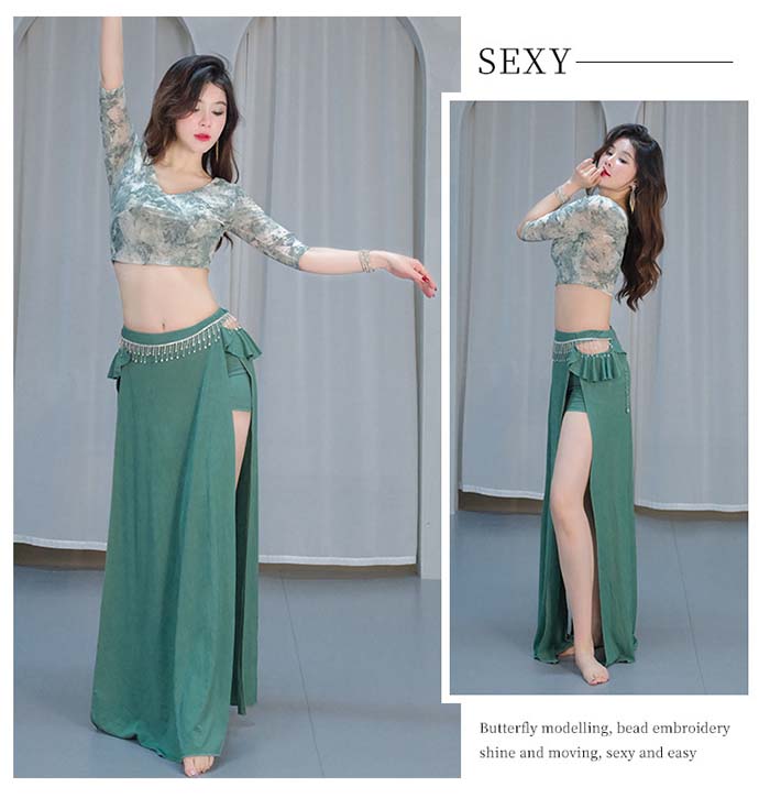 ベリーダンス レッスン着 セットアップ 体操 ダンス ベリーダンス 衣装セット 人気 グリーン ピンク ブルー パープル M L XL