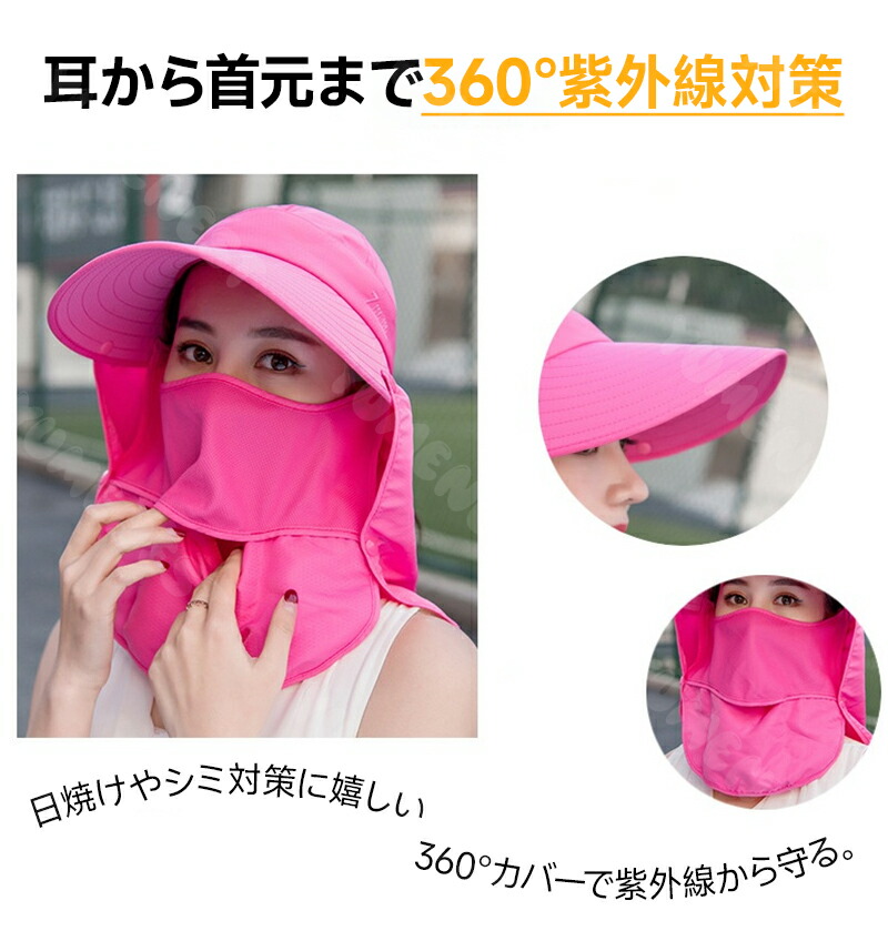日除け帽子 4way UVカット 紫外線対策 日焼け防止 グッズ 春 夏 秋 日よけ 帽子 農作業 フェイスカバー 水分補給 ネックカバー キャップ サンバイザー レディース UPF50+ 4way 折りたたみ 収納 ボタン取り外し 顎紐 つば広 無地 スポーツ