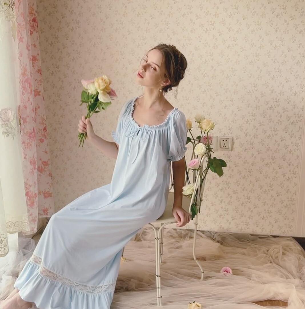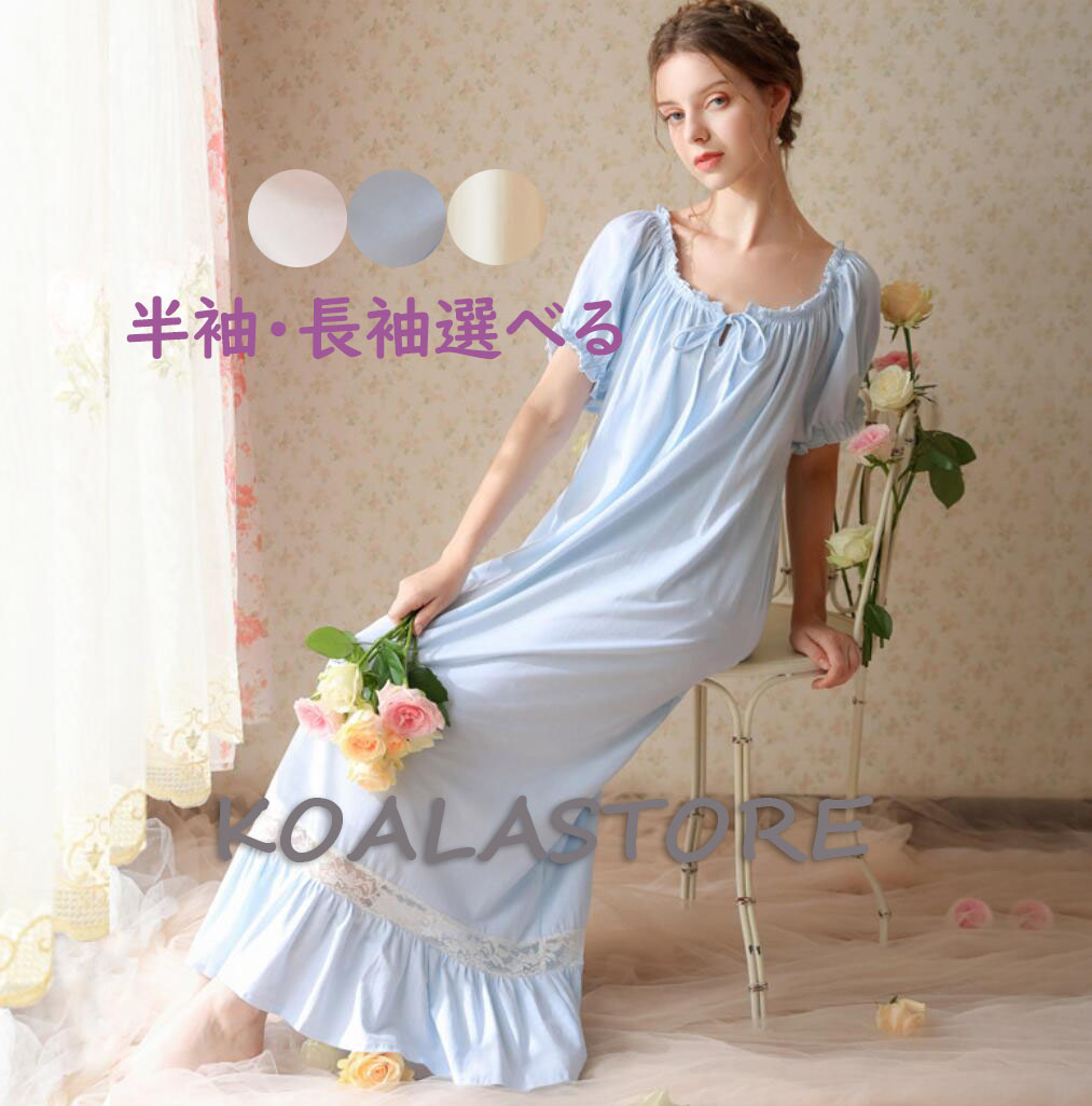 レディース パジャマ ネグリジェ 半袖 レディース ナイトウェア ルームウェア ネグリジェ 期間限定ポイントUP! S M L XL ホワイト半袖 ピンク半袖 ブルー半袖 ホワイト長袖 ピンク長袖 ブルー長袖