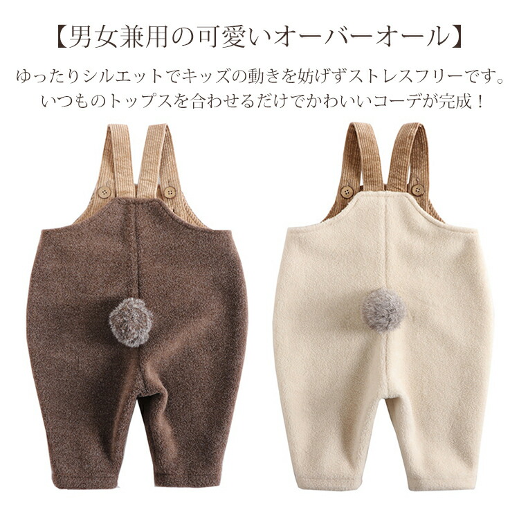 ベビー服 サロペット カバーオール 秋 キッズ ベビー マタニティ 特集 ベージュ ブラウン 80cm 90cm 100cm