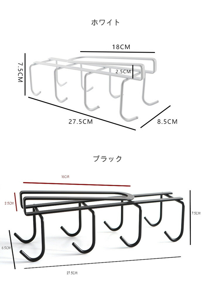 キッチンフック カップハンガー 2点セ キッチン整理用品 フック 47%Off ホワイト ブラック
