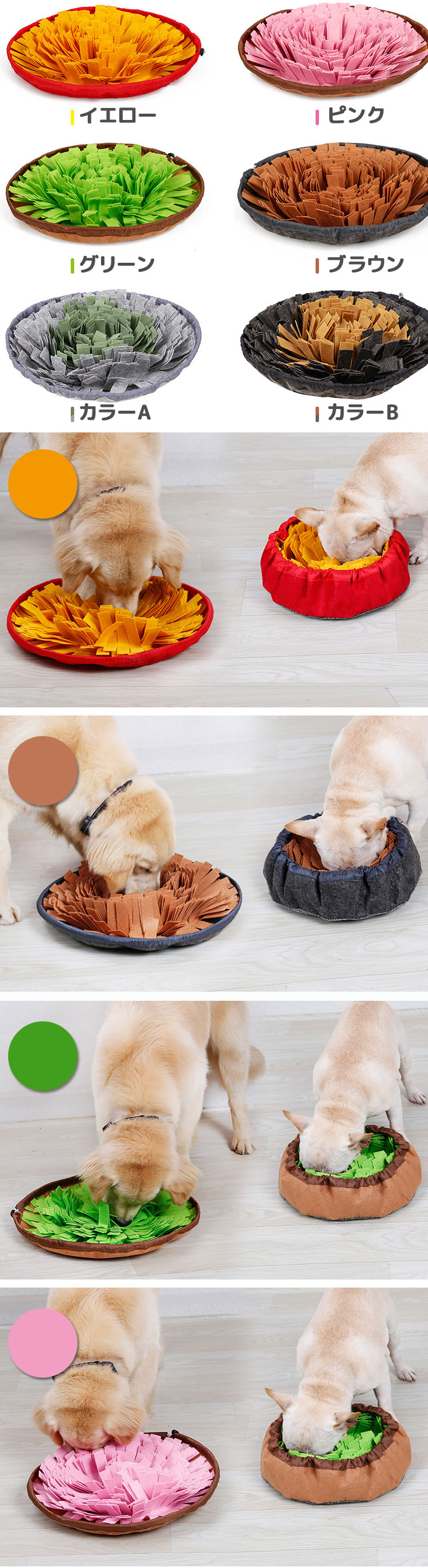 訓練毛布 知育玩具 ペットおもちゃ ノ ペット ペットグッズ 特集 イエロー ピンク グリーン ブラウン カラーA カラーB