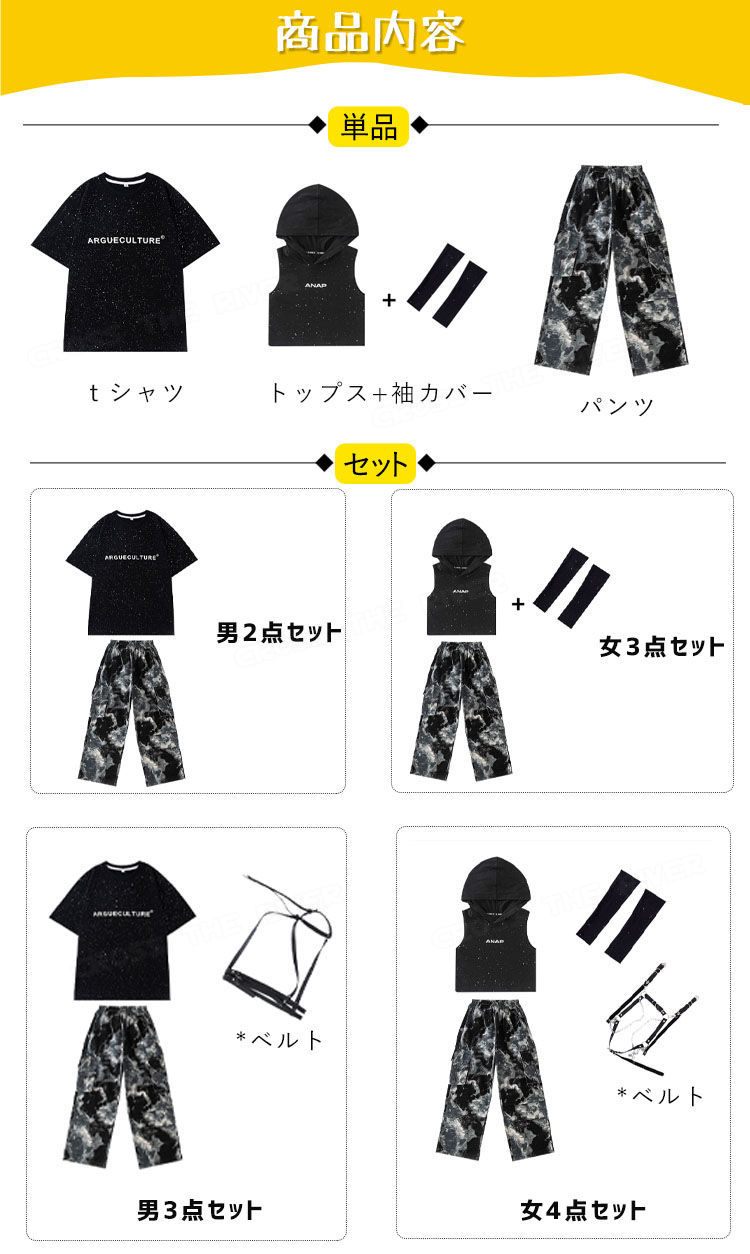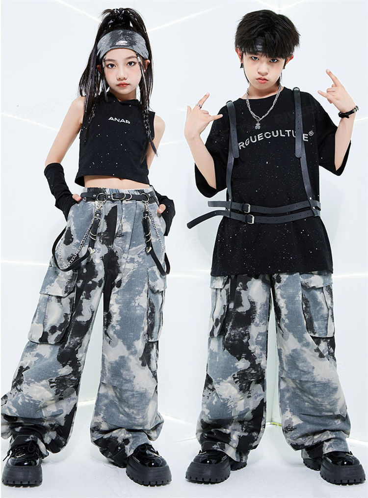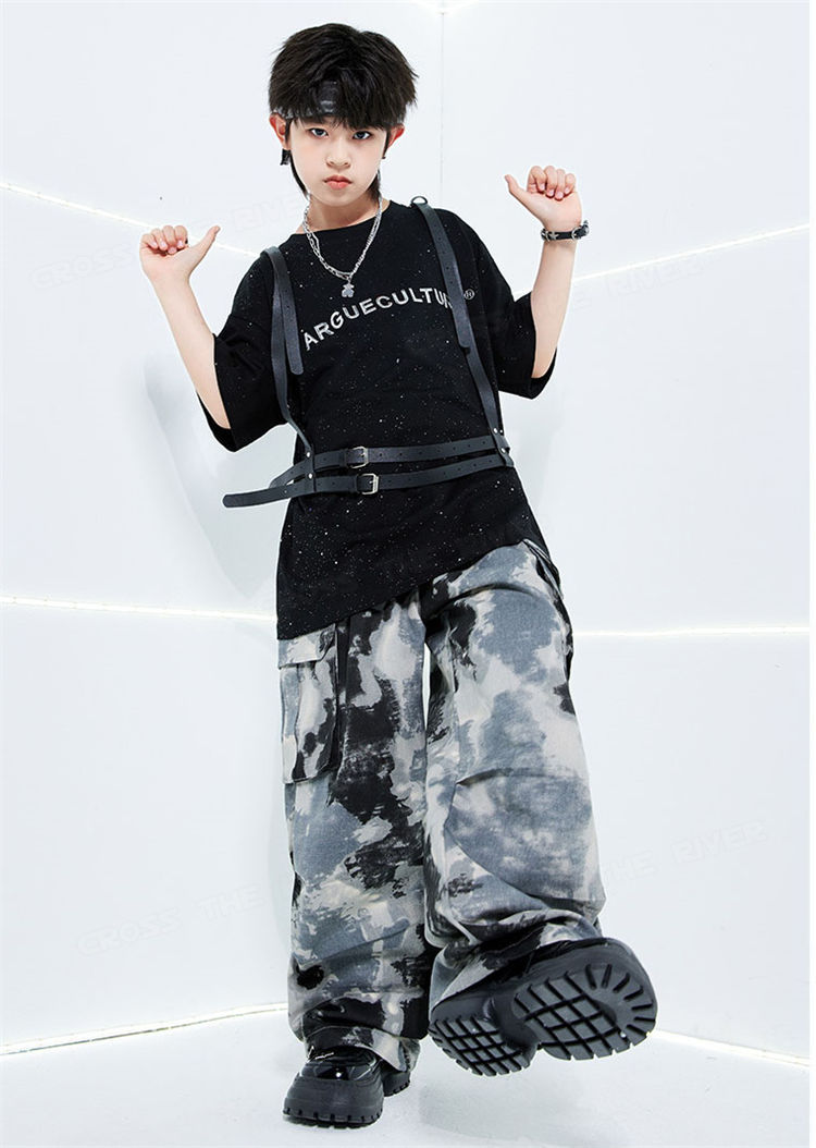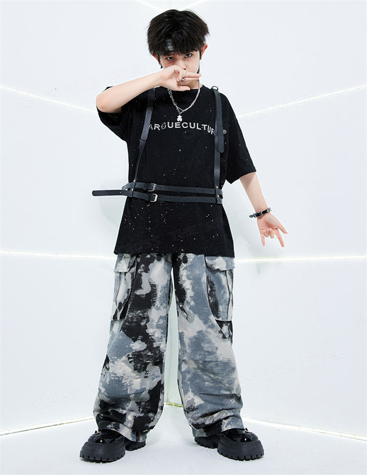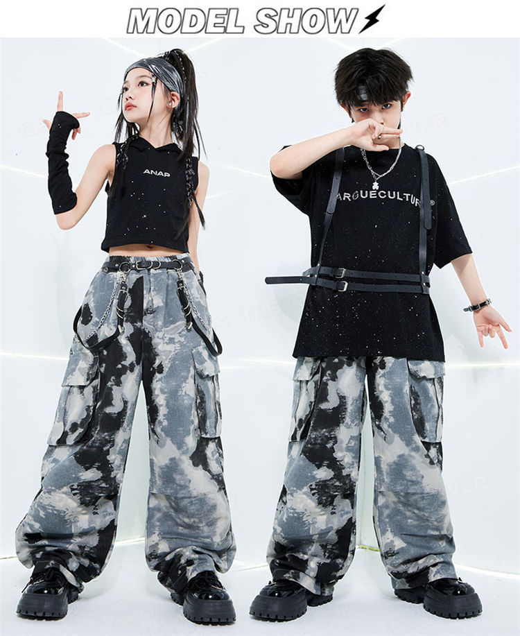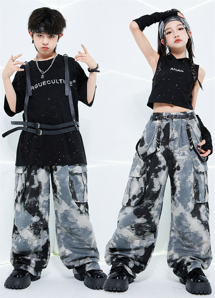 迷彩 デニムパンツ キッズダンス衣装セ 体操 ダンス 社交ダンス ウェア 通販 tシャツ トップス+袖カバー パンツ 男2点セット 女3点セット 男3点セット 女4点セット 120cm 130cm 140cm 150cm 160cm 170cm 180cm