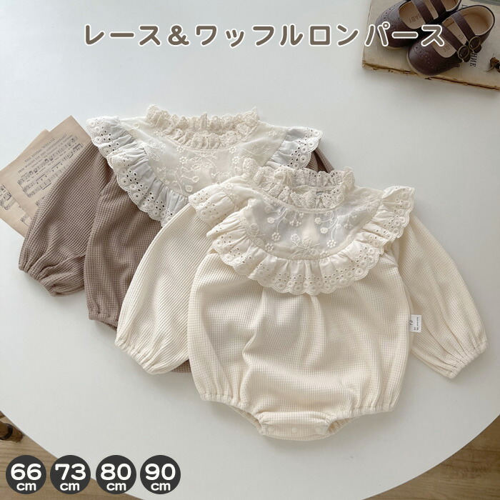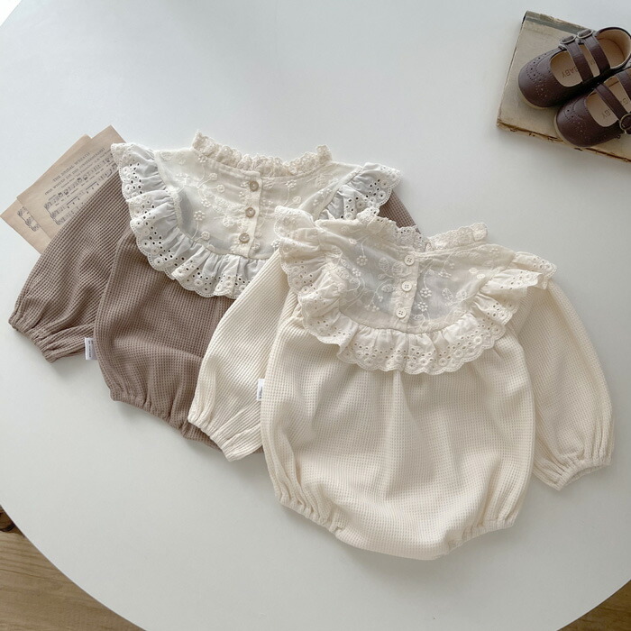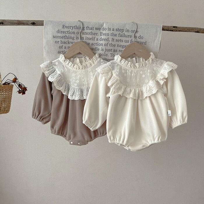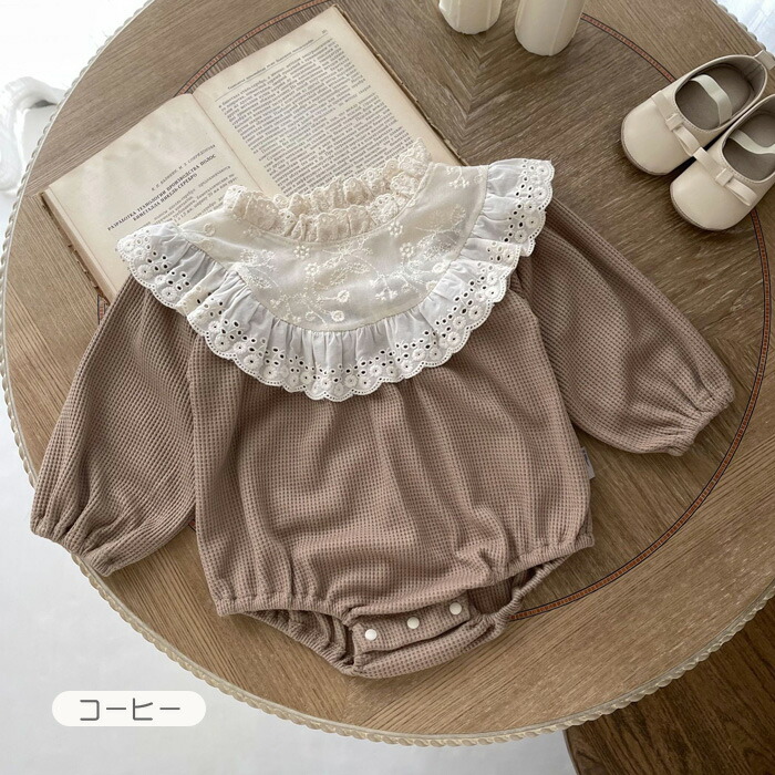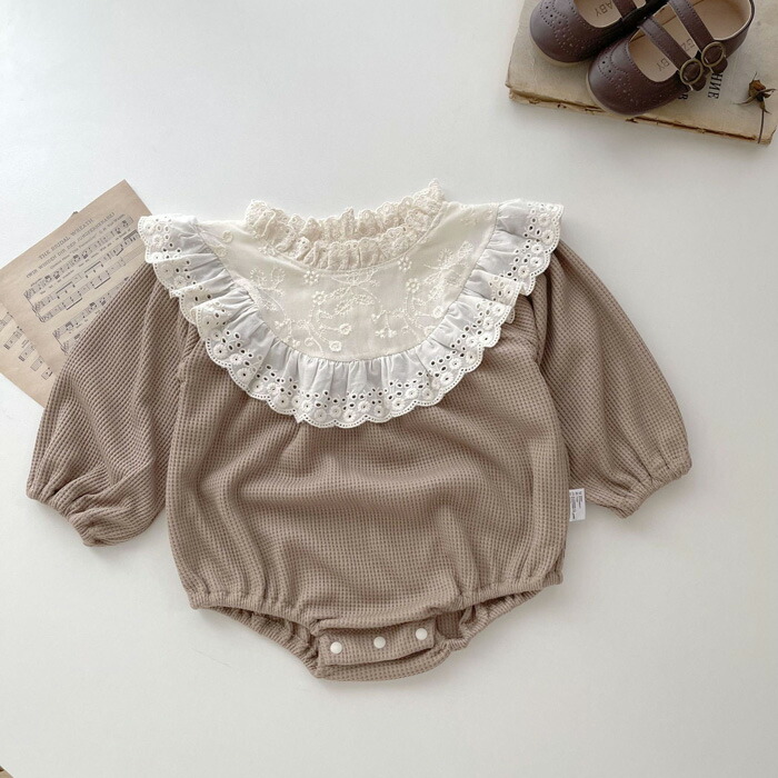 ベビー服 長袖 ロンパース レースワッ ベビー ベビー服 ファッション カバーオール ロンパース 人気 ベージュ コーヒー 66cm 73cm 80cm 90cm