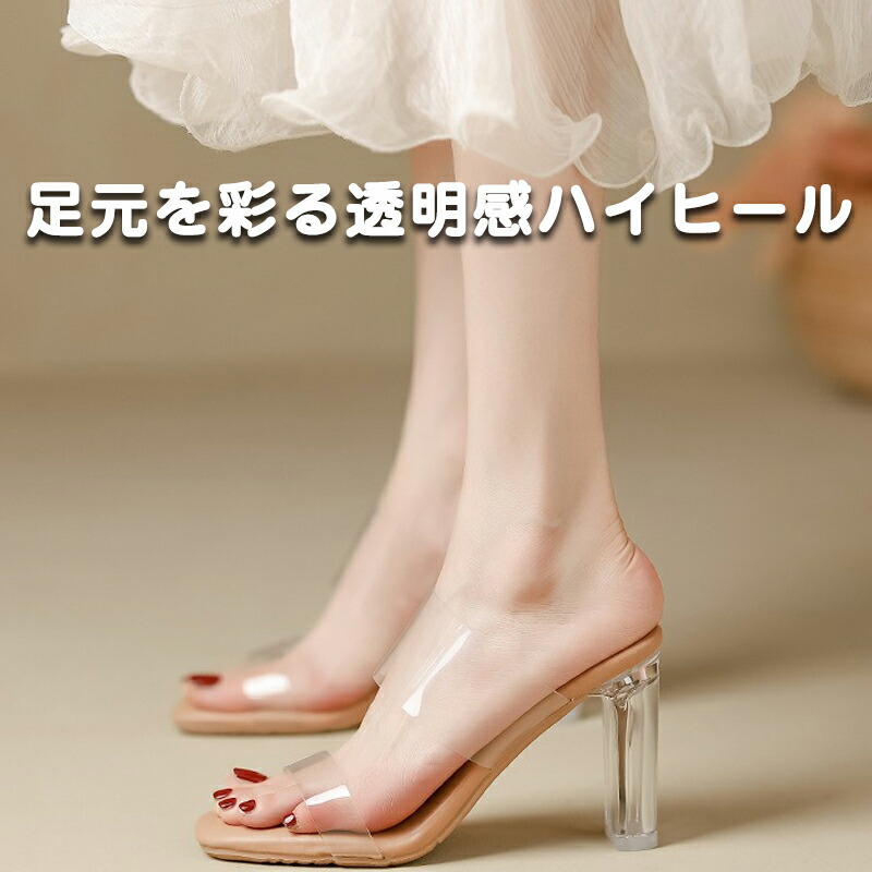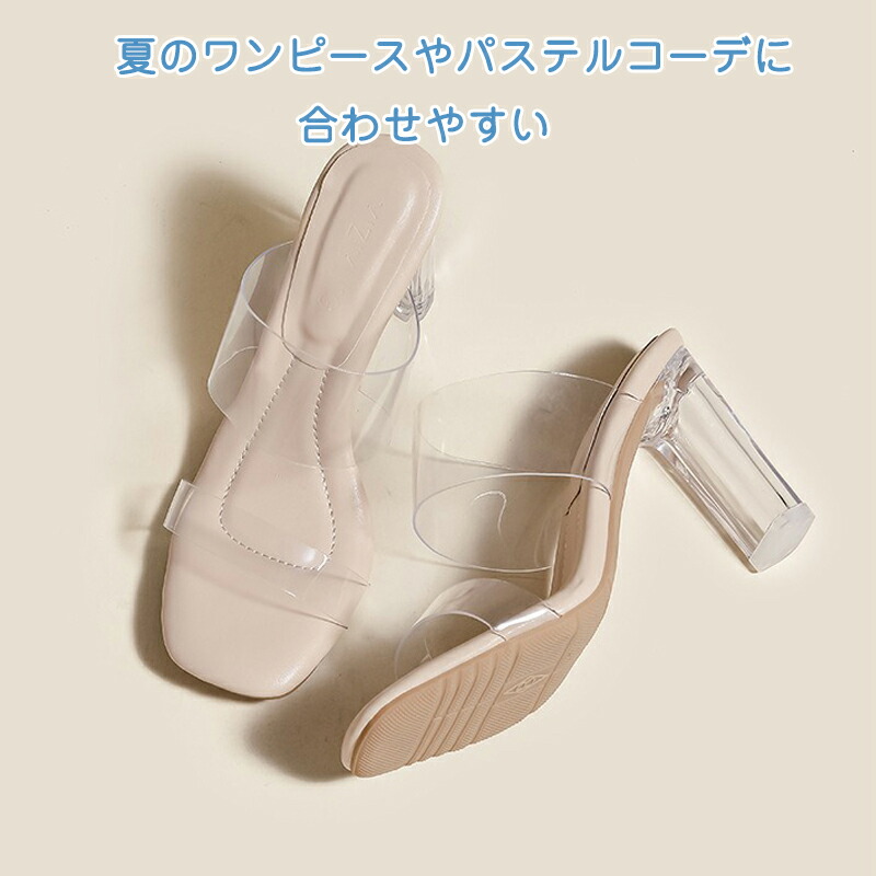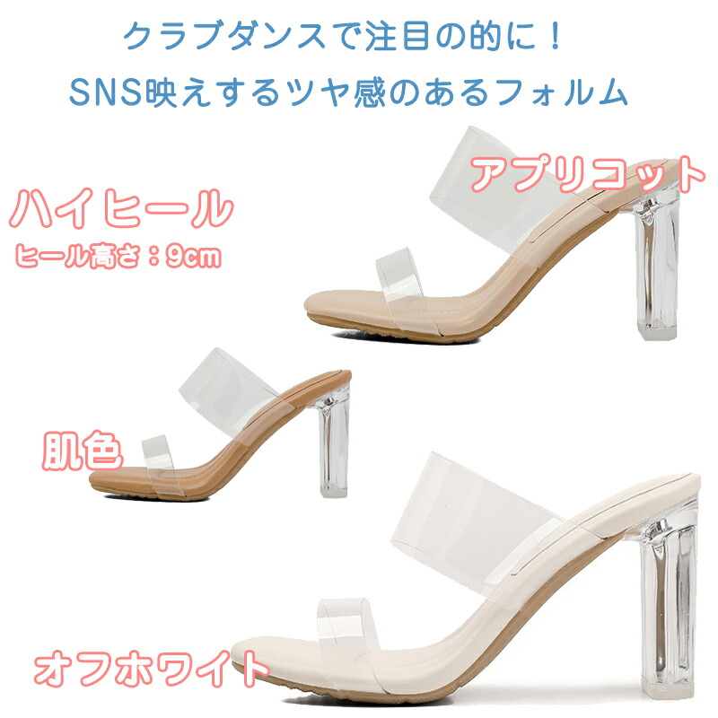 透明サンダル レディース 夏 透明ヒー 靴 新作 オフホワイト アプリコット 肌色 3cm 5cm 7cm 9cm