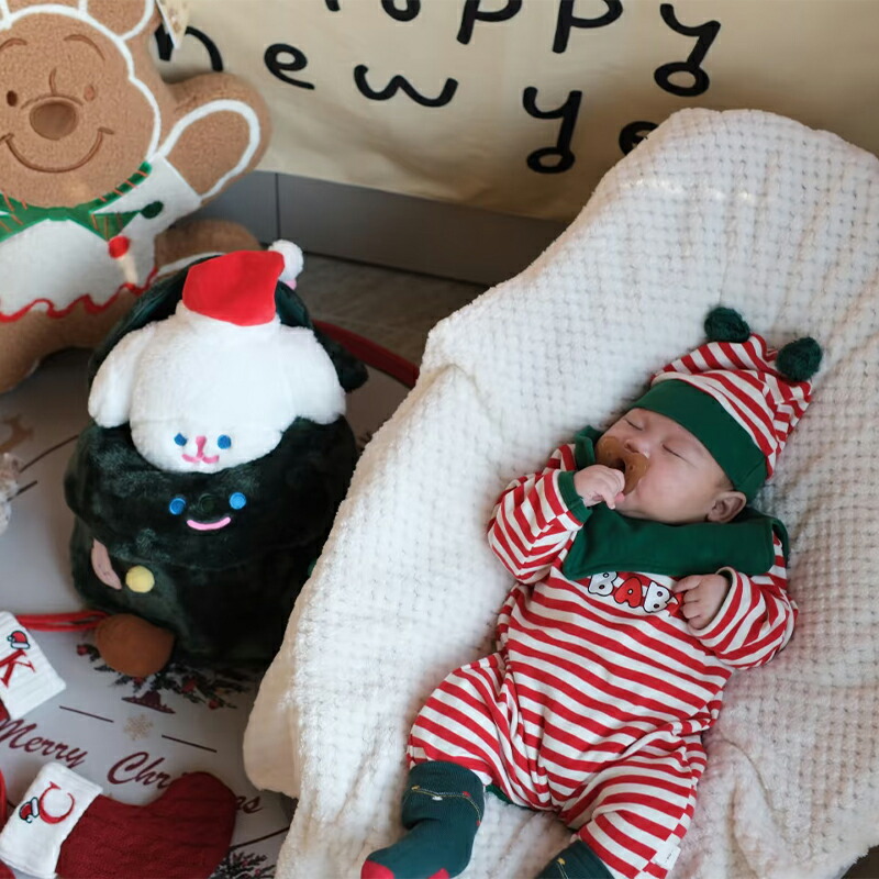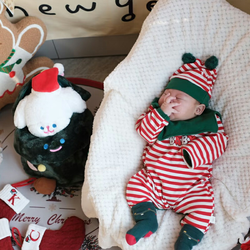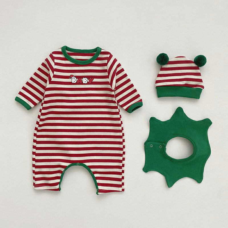 ベビー クリスマス ストライプ ロンパ ベビー ベビー服 ファッション カバーオール ロンパース 特集 レッドストライプ グリーンストライプ 66cm 73cm 80cm 90cm