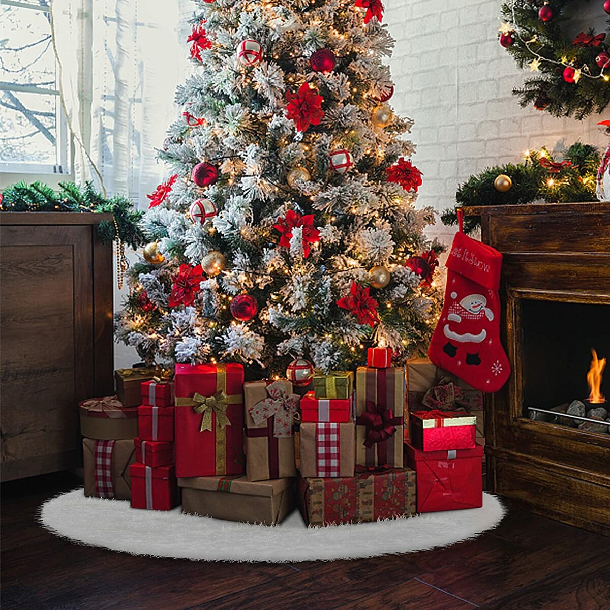 【クリスマススカート】高品質のファー素材、エレガントで目を引く。 柔らかくて暖かい、冬のペットに人気のスポット、クリスマスの気分を添えます。ファー生地なので、柔らかく、心地よい肌触りです。 ツリースカートは、ペットや子供がクリスマスツリーの下に休むのに最適な場所です。 クリスマスツリーに加えるのに最適です。 クリスマスのデコレーションに最適です。