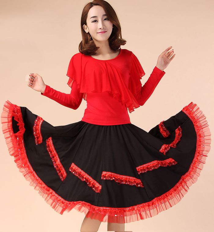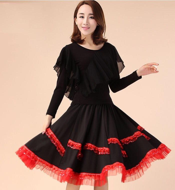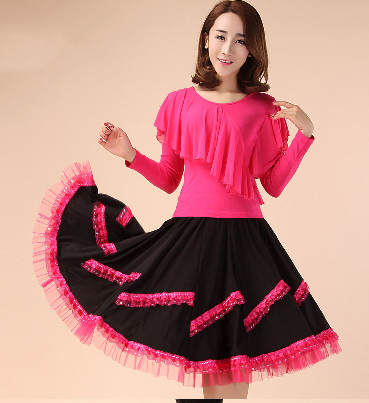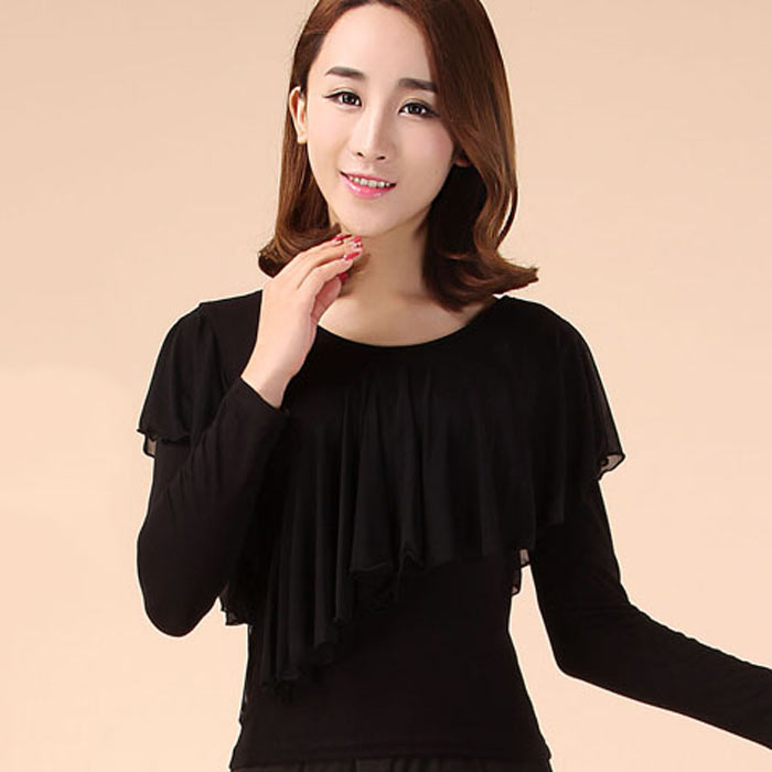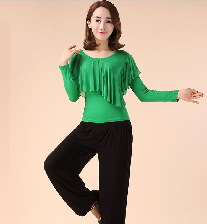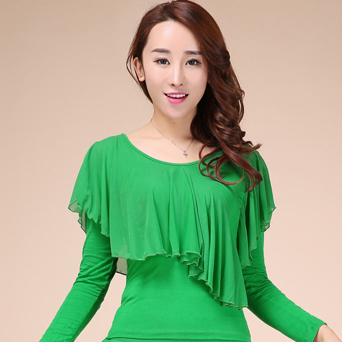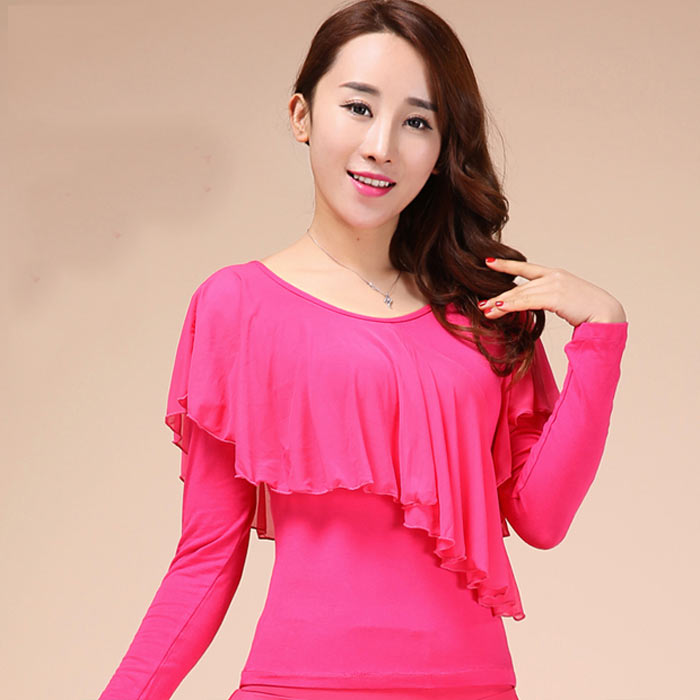 社交ダンス トップス 胸元フリル 長袖 体操 ダンス 社交ダンス ウェア 通販 レッド ローズ ブラック グリーン M L XL XXL 3XL 4XL