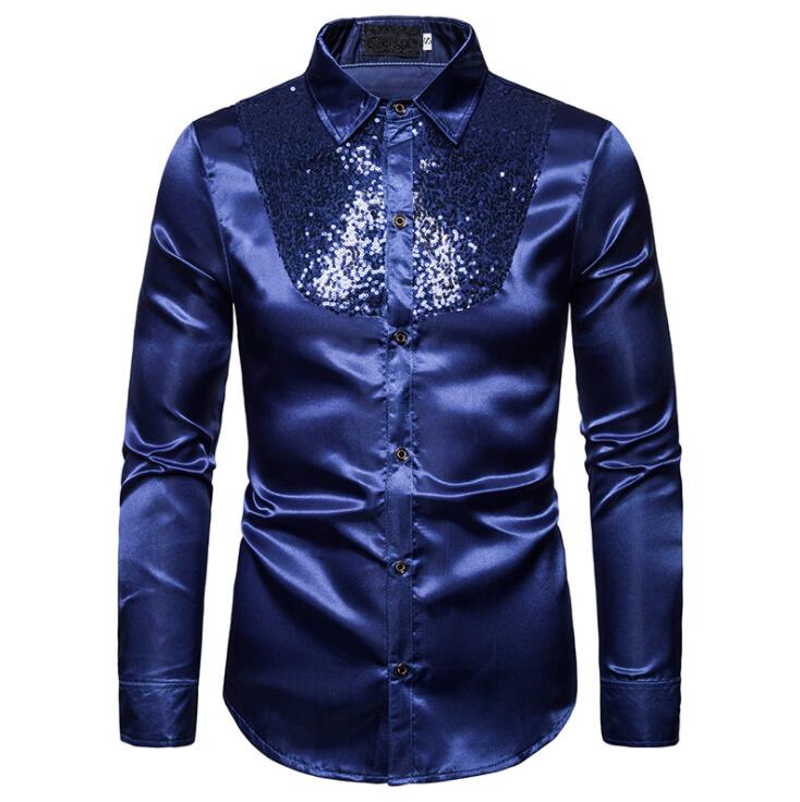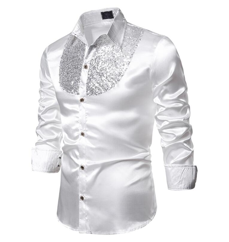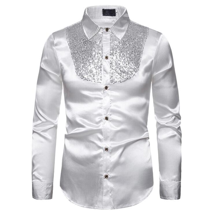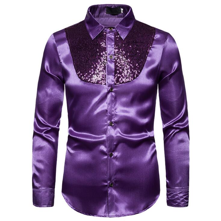 サテンシャツ メンズシャツ ワイシャツ トップス ワイシャツ 期間限定割引クーポン ホワイト ブラック レッド パープル ゴールド ダークブルー S M L XL XXL