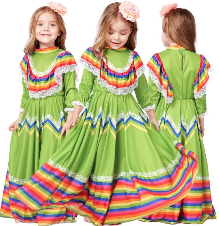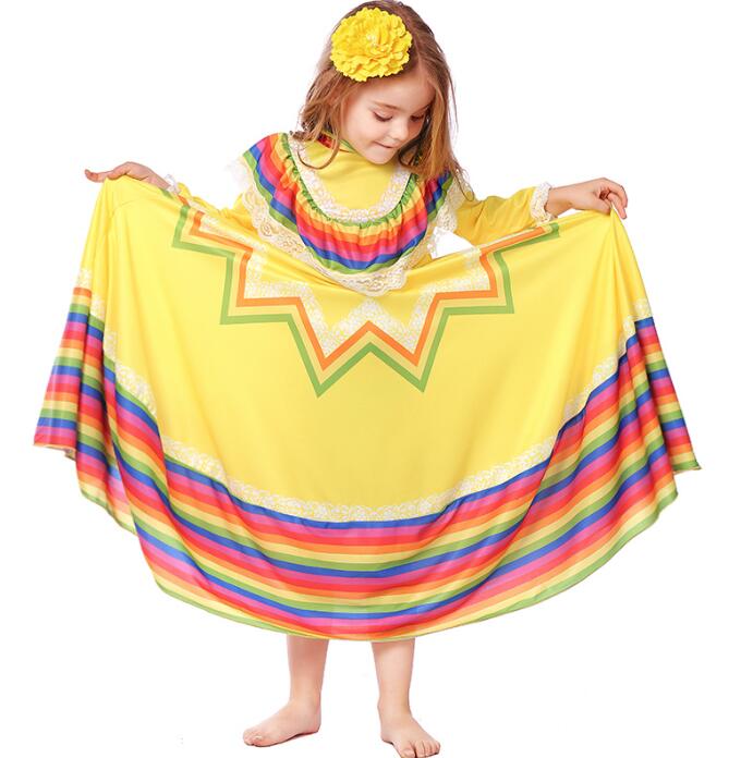 女の子 ダンス衣装 大きい裾 ワンピー レッド ブルー ローズ グリーン イエロー XS S M L