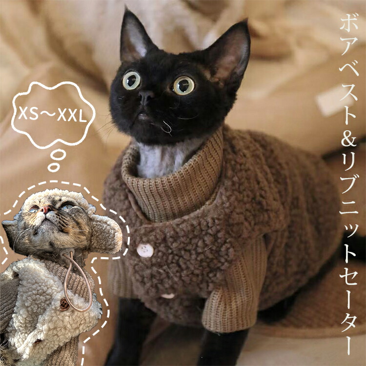 キャットウェア ボアベスト セーター ベージュセーター ブラウンセーター オフホワイトベスト コーヒーベスト オフホワイト+ベージュ コーヒー+ブラウン XS S M L XL XXL