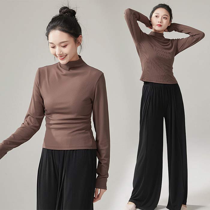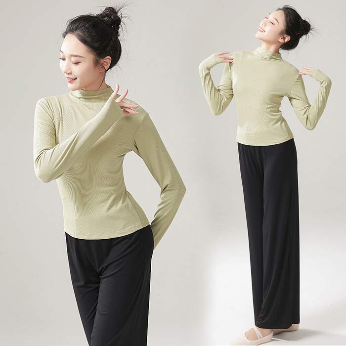 バレエ トップス 長袖 ストレッチ 大 ブラック ホワイト グリーン 杏色 コーヒー色 S M L XL