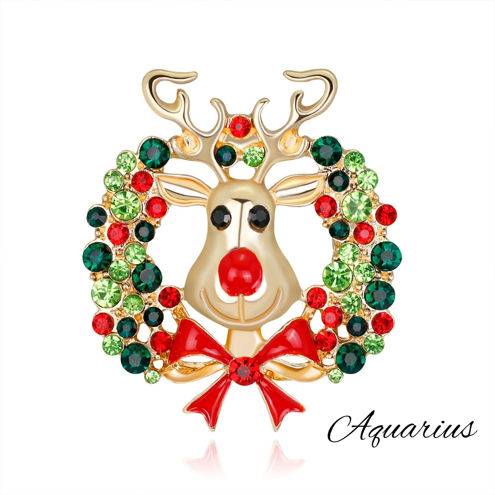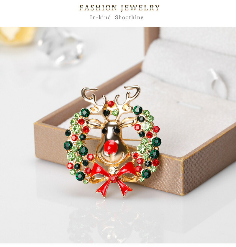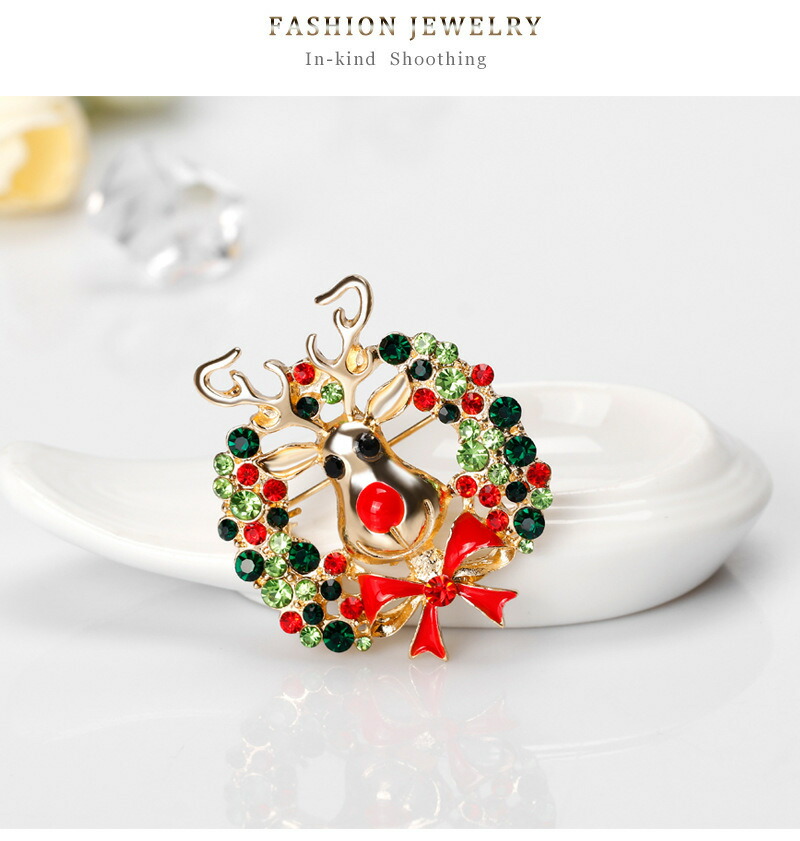 オーストリア スワロフスキー トナカイ リース ブローチ アクセサリー レディースジュエリー ジュエリー