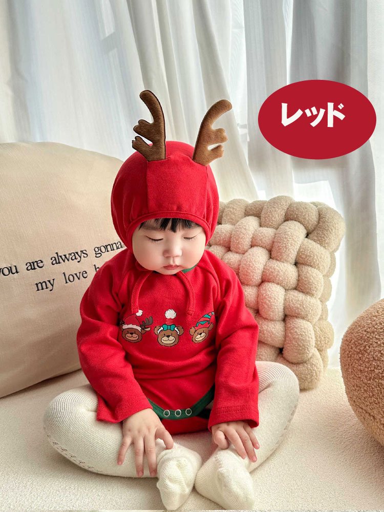 2点セット クリスマス衣装 ベビー服 ベビー ベビー服 ファッション カバーオール ロンパース 通販 レッド グリーン 66cm 73cm 80cm 90cm