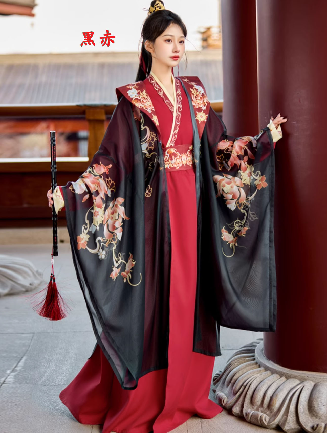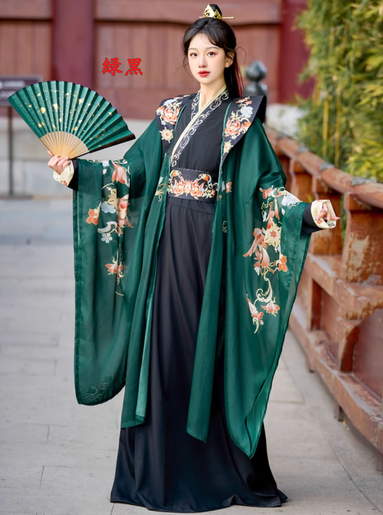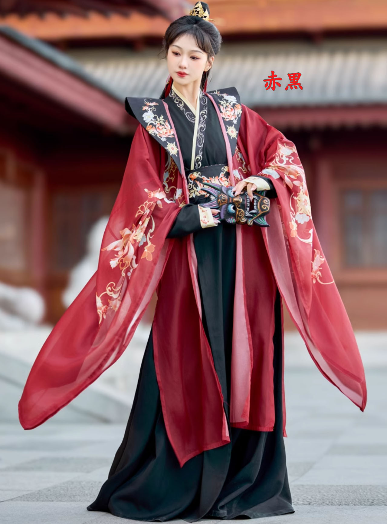 華やか漢服 振り袖羽織付き 3点セット コスプレ 変装 仮装 コスチューム一式 続々登場 S M L XL 3XL 黒赤 赤黒 白赤 緑黒