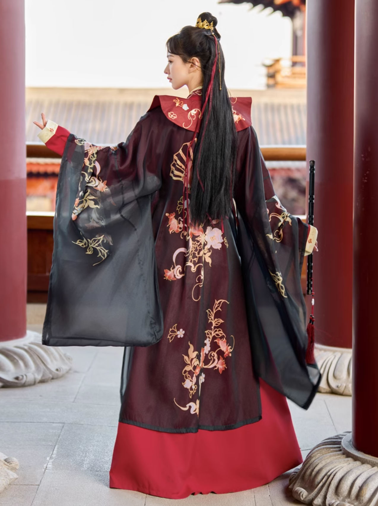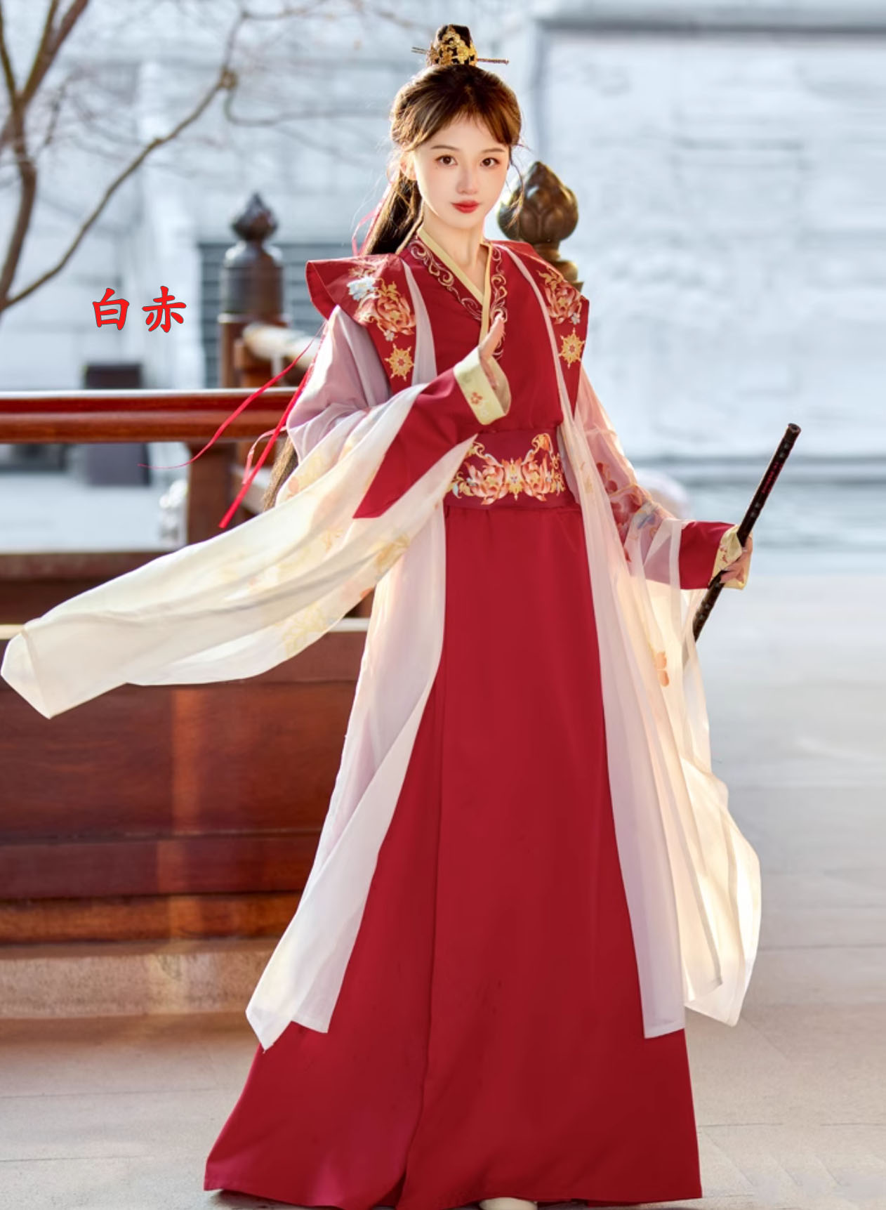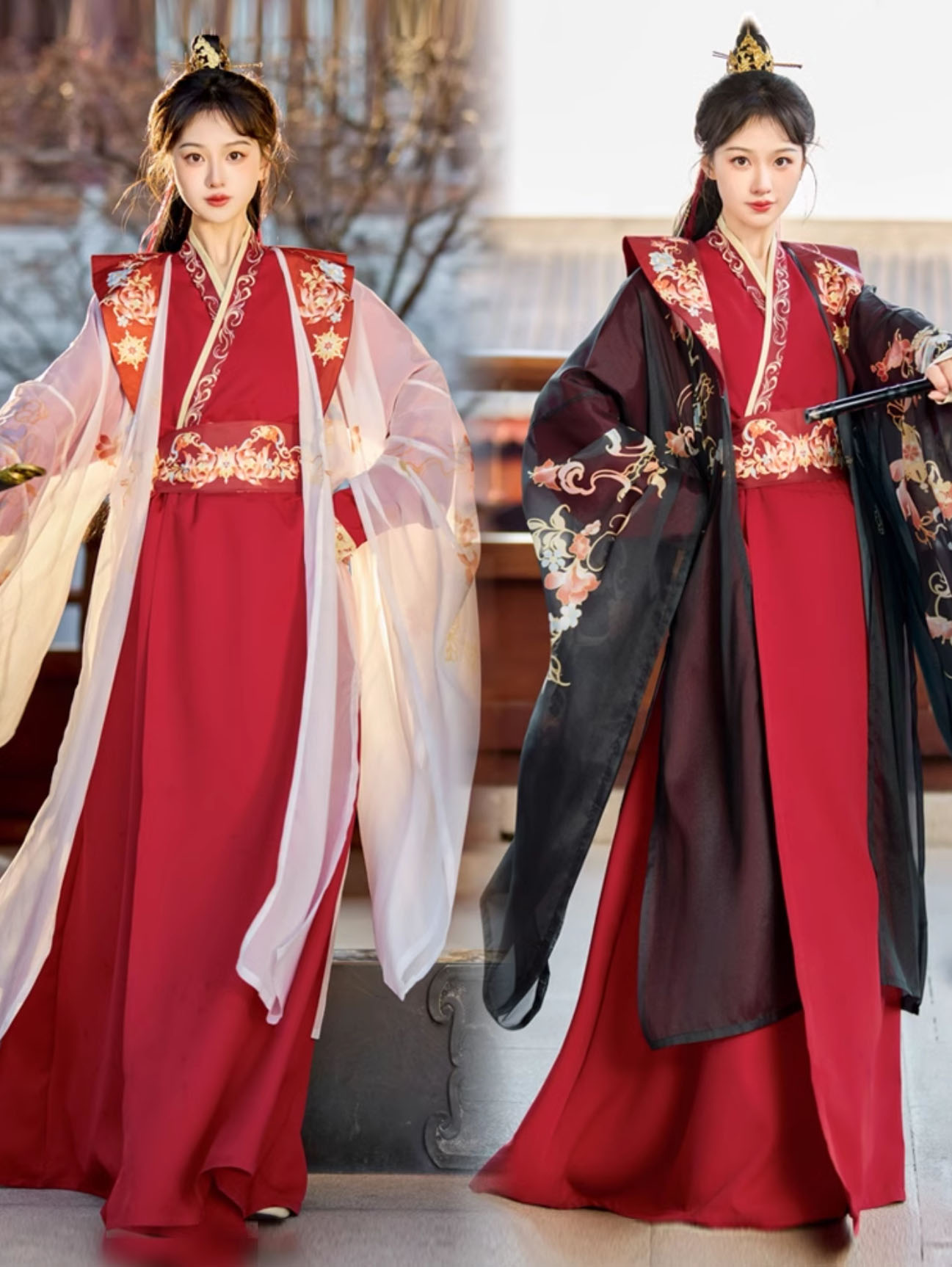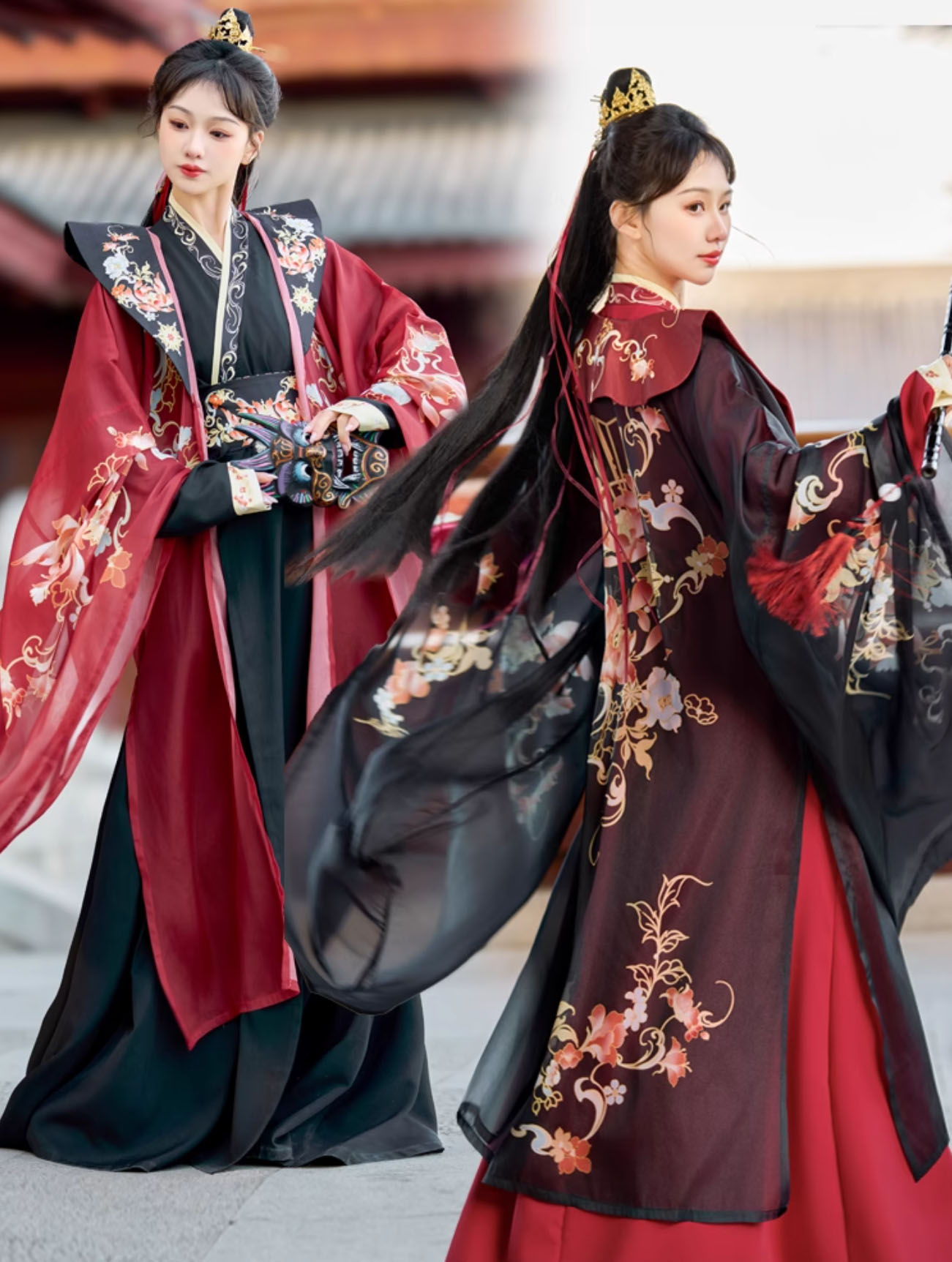 華やか漢服 振り袖羽織付き 3点セット コスプレ 変装 仮装 コスチューム一式 続々登場 S M L XL 3XL 黒赤 赤黒 白赤 緑黒