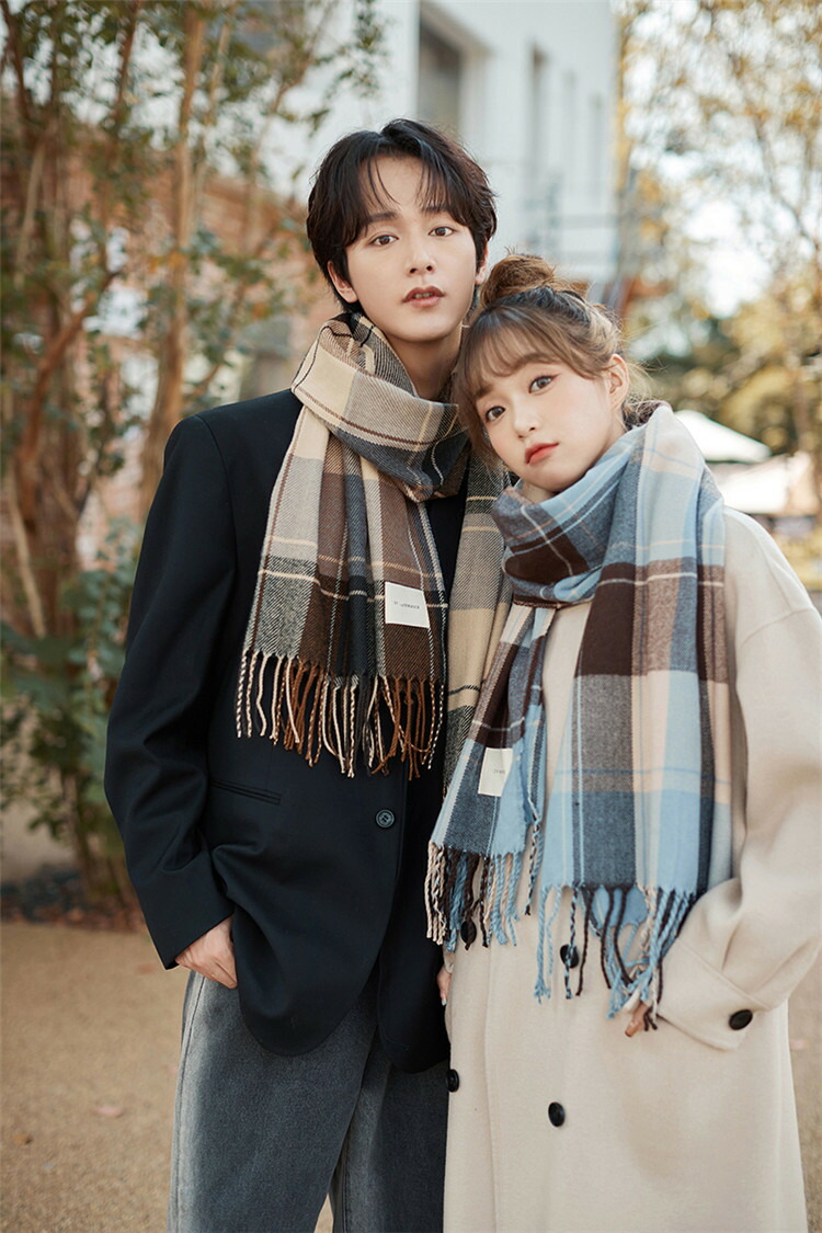 ペアマフラー マフラー ペアルック ペ マフラー スカーフ レディースマフラー ストール 人気 A01・カーキ B01・ブルー