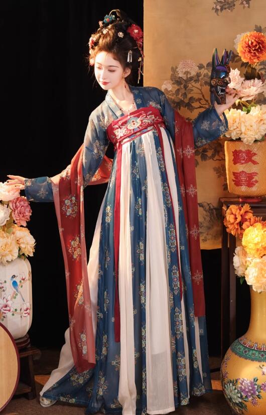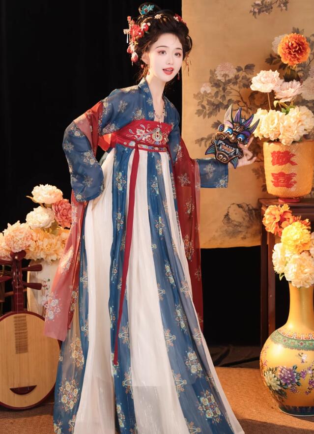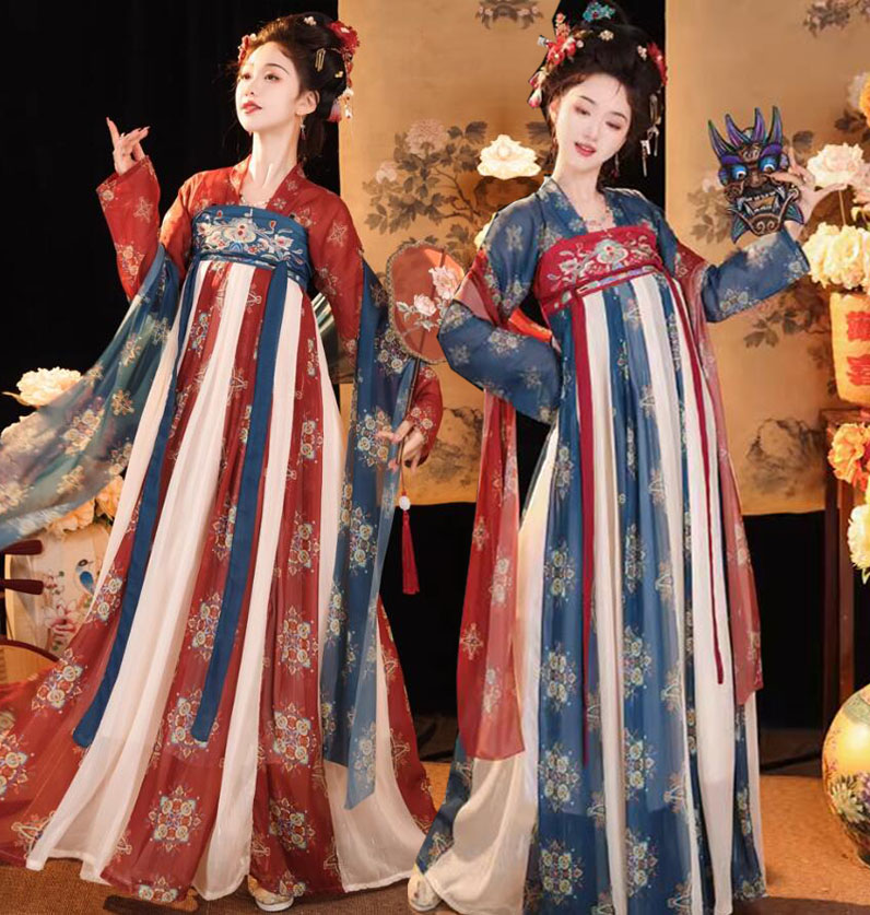 漢服 唐装 中華コスプレ衣装 ストール コスプレ 変装 仮装 コスチューム一式 期間限定割引クーポン S M L XL レッド ブルー