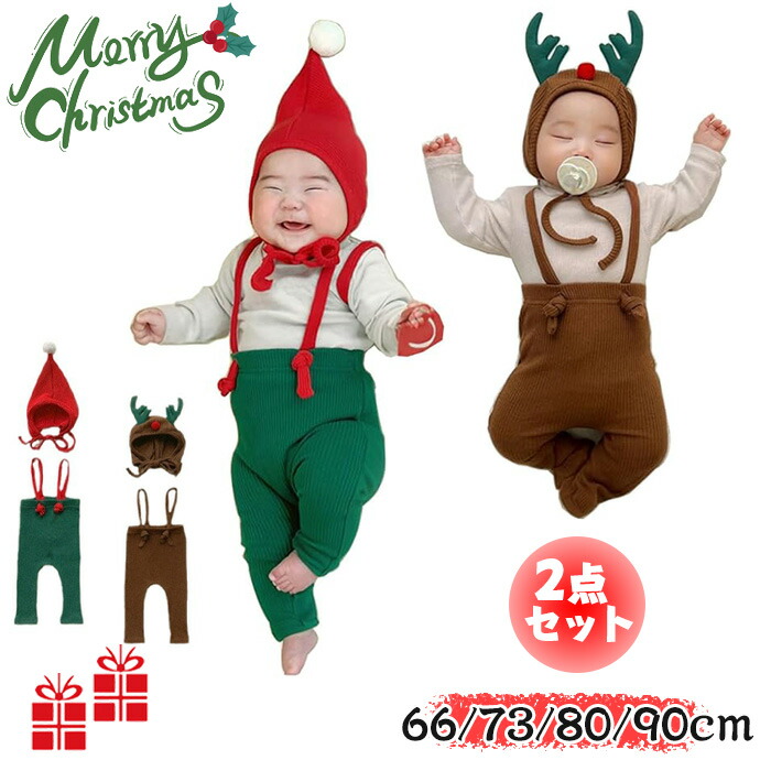 クリスマス ベビーレギンス 2点セット コスプレ 変装 仮装 コスチューム一式 期間限定割引クーポン グリーン ブラウン 66cm 73cm 80cm 90cm